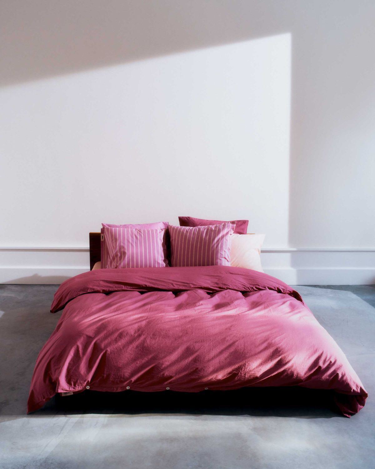 100%オーガニックコットン製の掛け布団カバー。ダブルサイズ。平織り。200スレッドカウント。軽いストーンウォッシュで柔らかさをプラスしています。スリット、ずれ防止用の紐付き。
