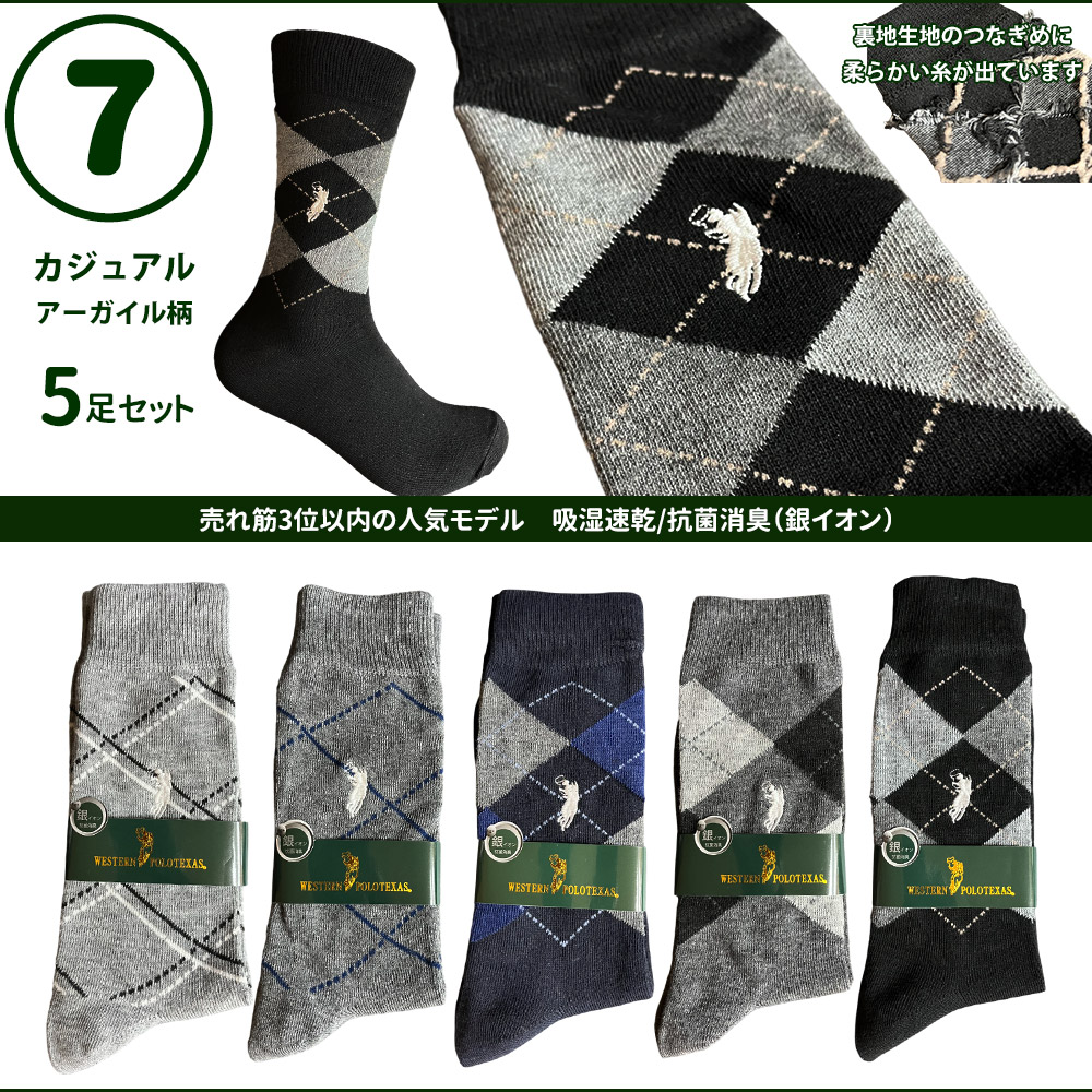 定番カラーを含むお得 ウエスタンPOLOソックス5足セット