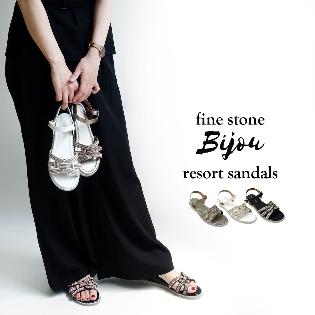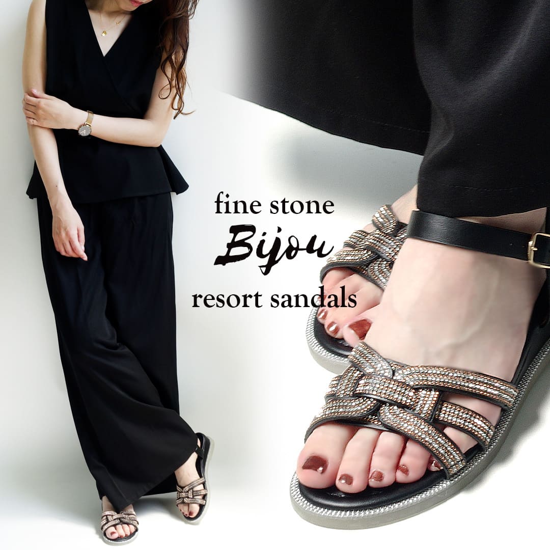サンダル レディーズ 編み込みビジュー フラット 歩きやすい ぺたんこ 黒 - ショッピング・ショップ | 通販検索