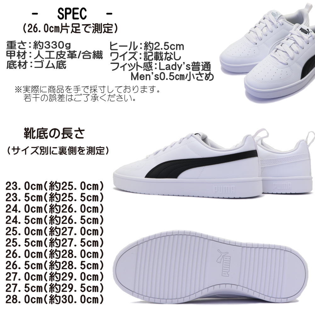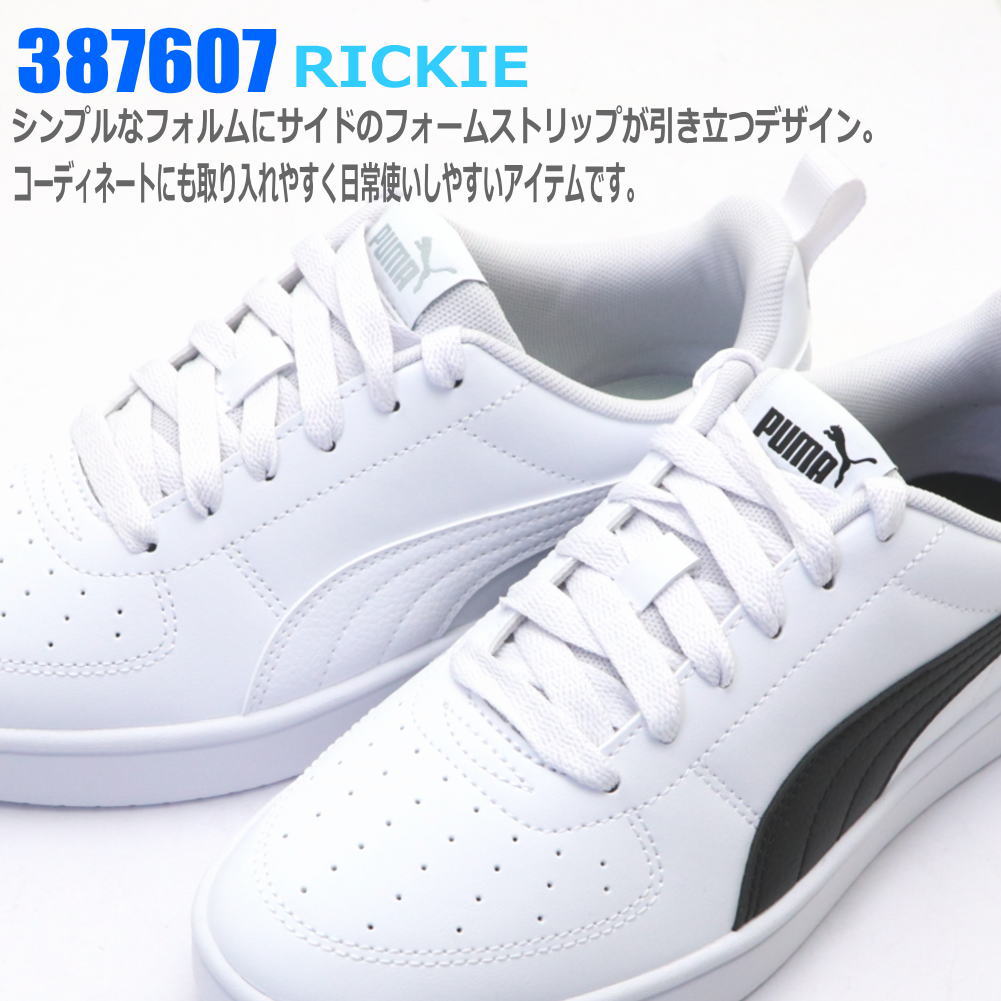 即納 PUMA リッキー メンズ レディース ユニセックス スニーカー 白靴 真っ白 通学 コートタイプ No.387607