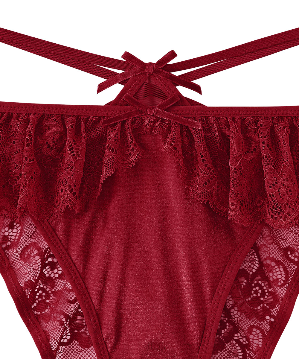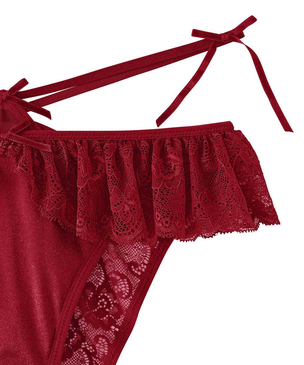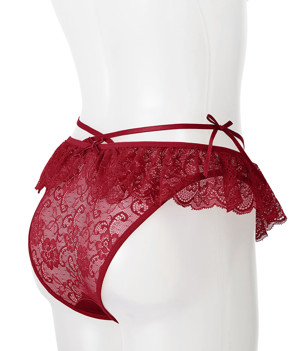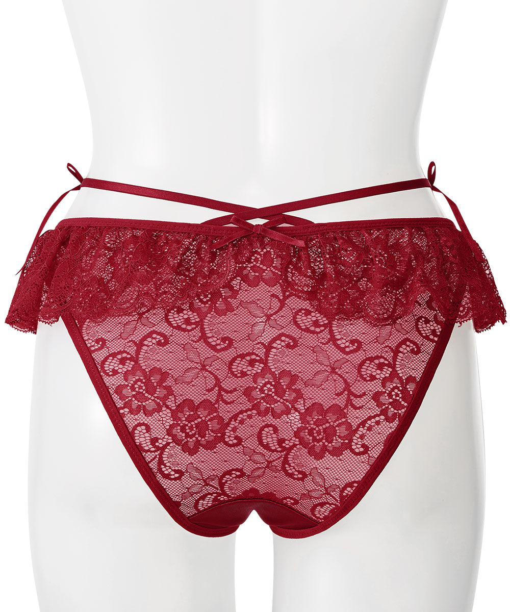 艶やかなサテン生地にレースフレアのハーフバックショーツ