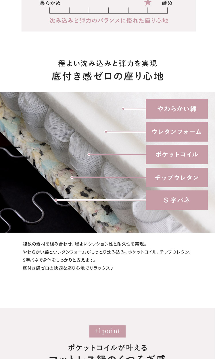 構造部材/スチール、ウェービングベルト、銅製バネ、ポケットコイル
