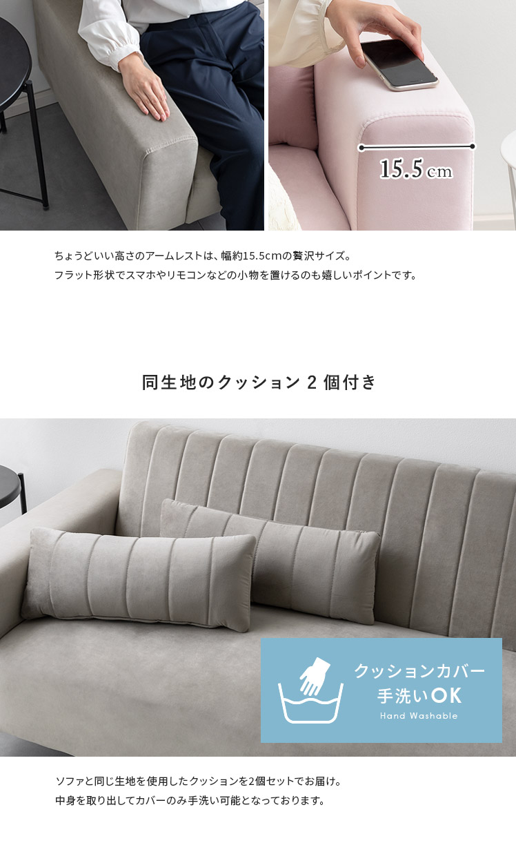 組立式(組立て時間約35分)、クッションカバーのみカバー取り外し可