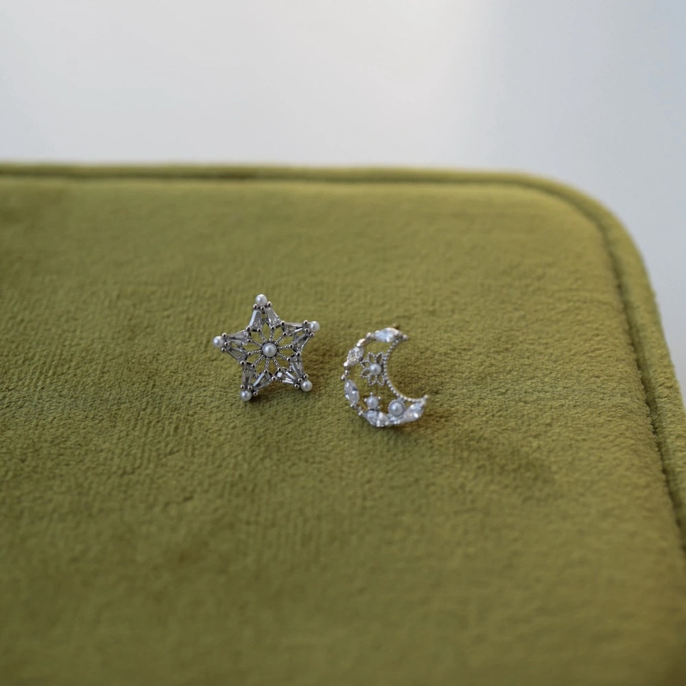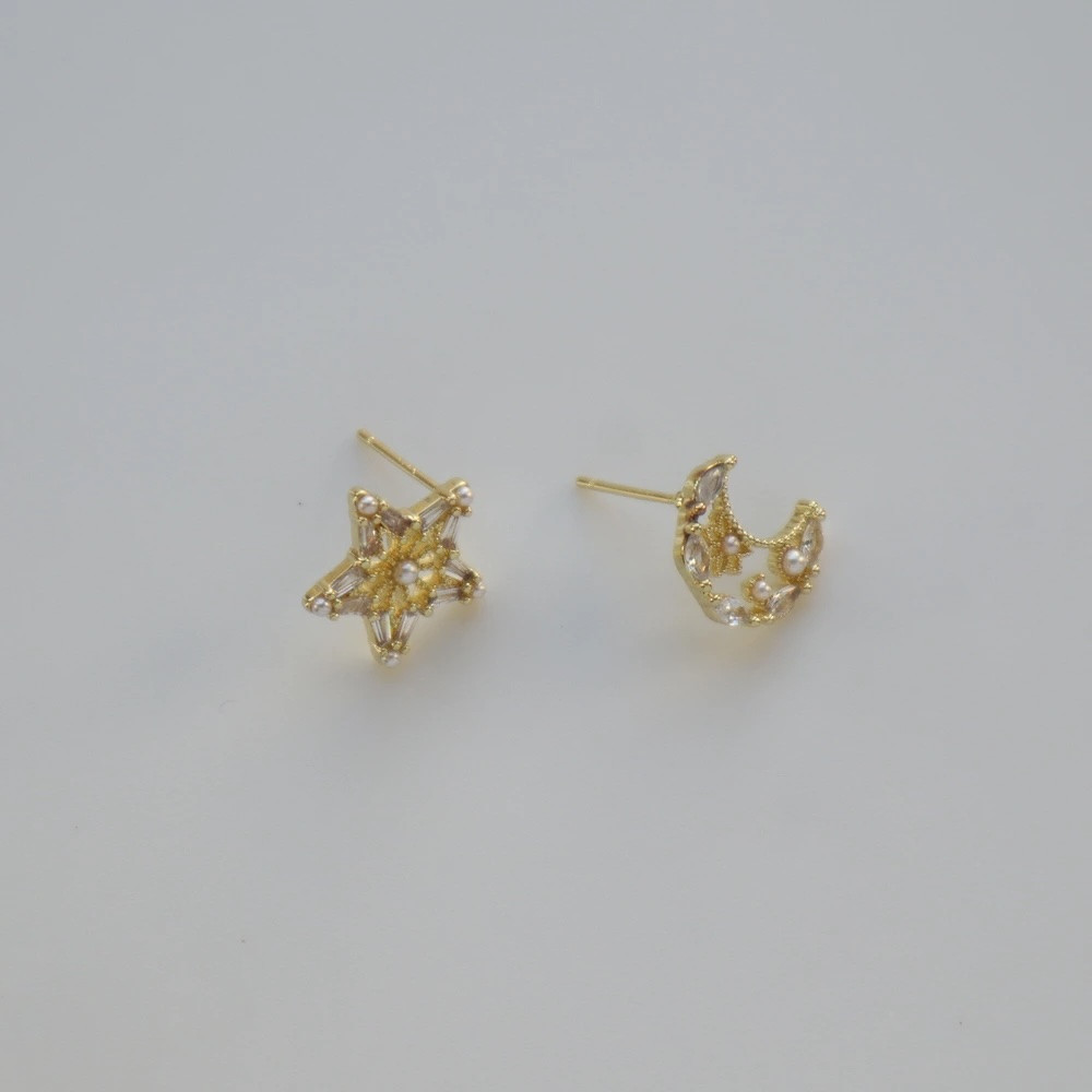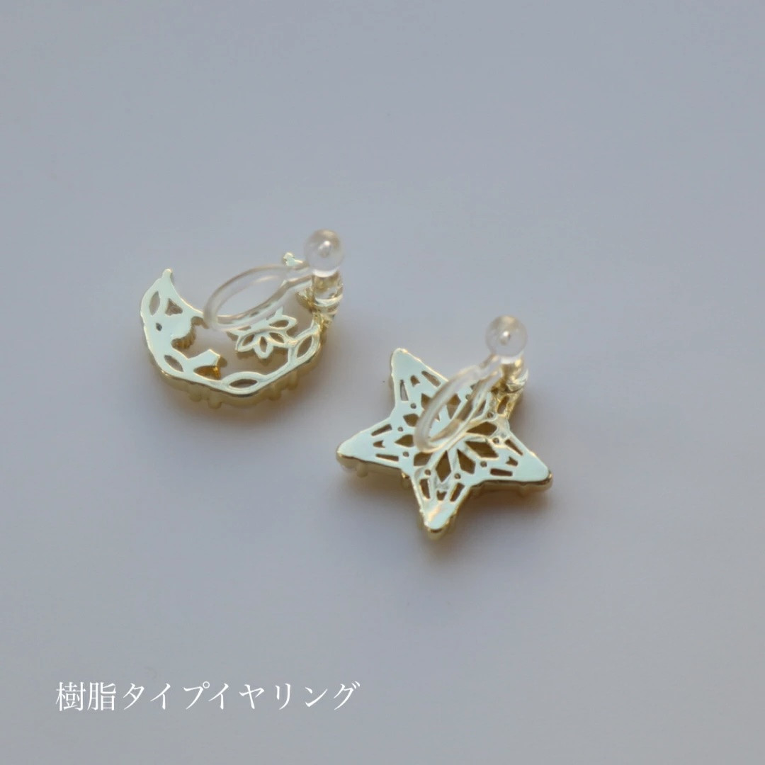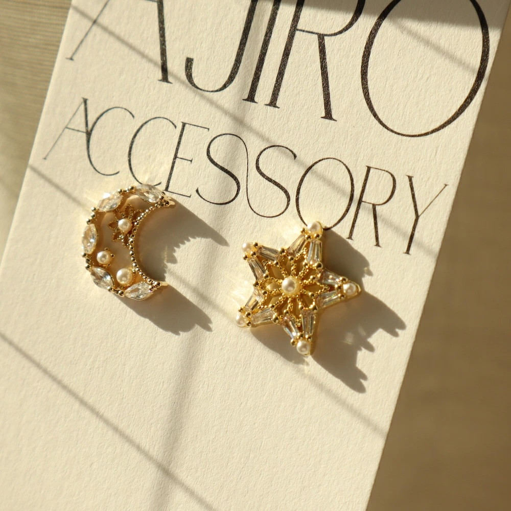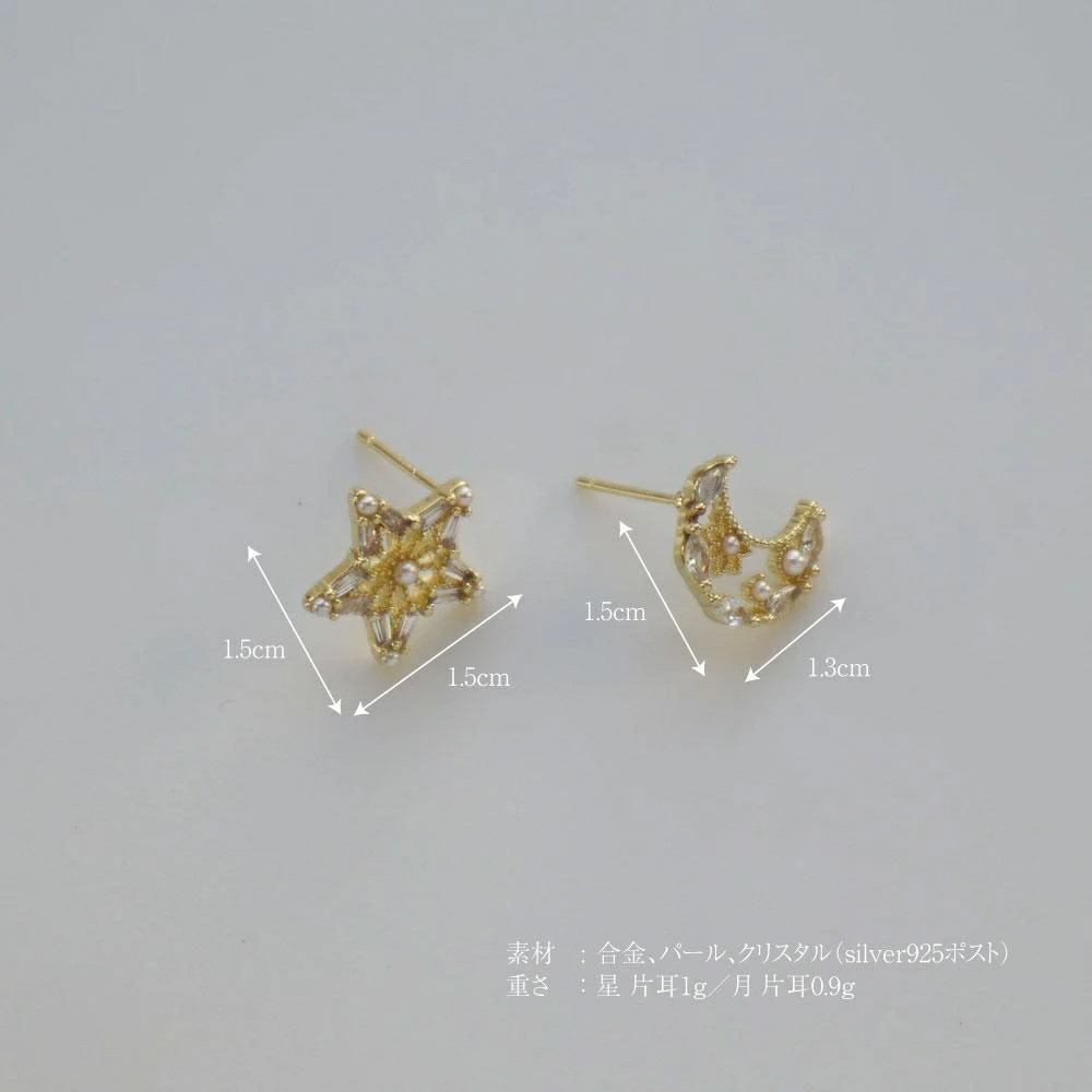 ピアス イヤリング レディース プチプラアクセサリー アシンメトリー 星 スター 月 ムーン 大ぶり ゴールド シルバー 人気 ajiro accessory P283