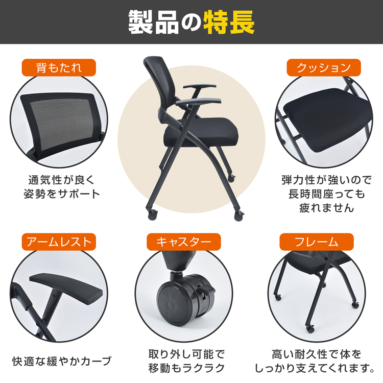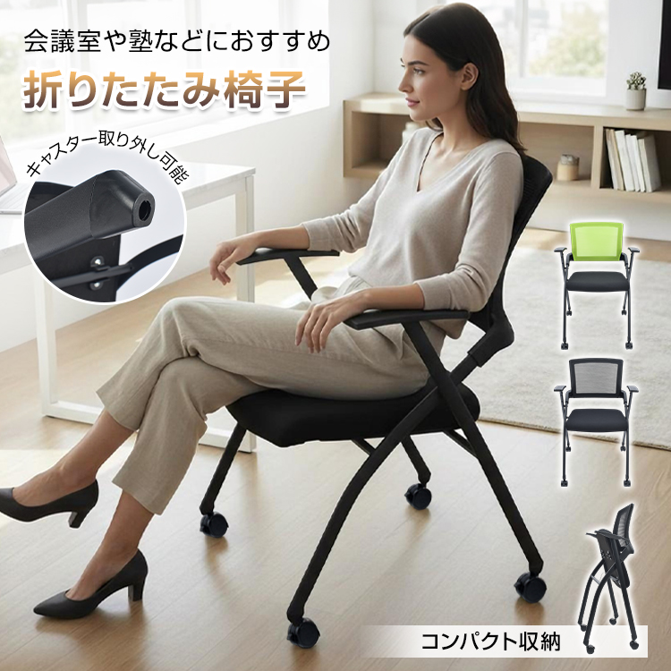1脚 キャスター付き キャスター付け外し ライブ会議 イベント 椅子 チェア デスクチェア 事務所 塾 会議室 ミーティング 収納 勉強 仕事 背もたれ メッシュ アームレスト 肘掛け クッション 2way 体圧分散 敬老の日 父の日 母の日 クリスマス プレゼント ギフト