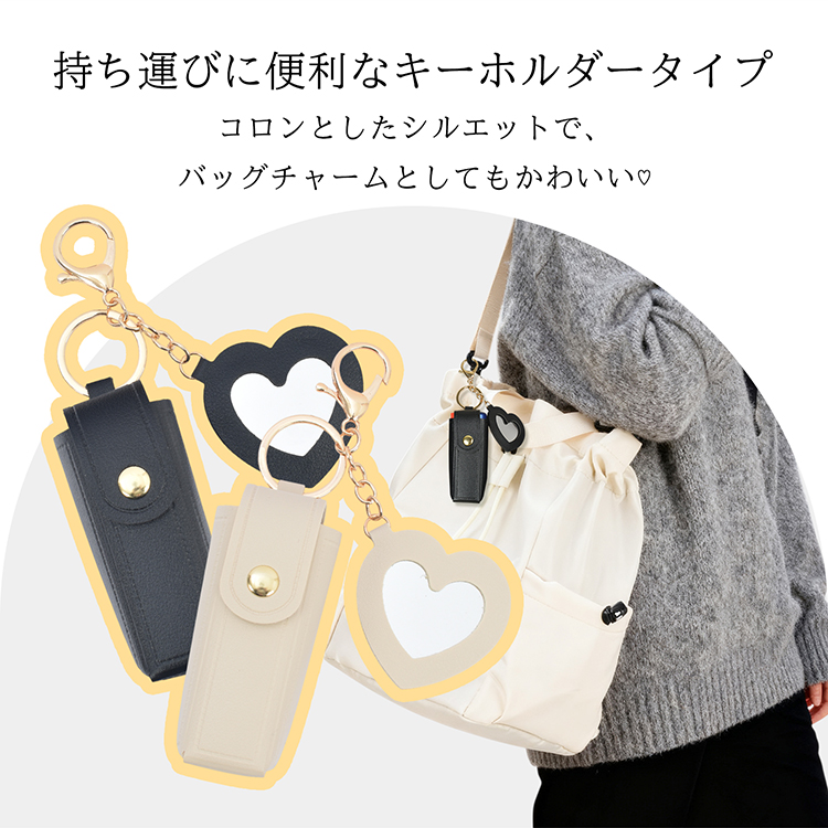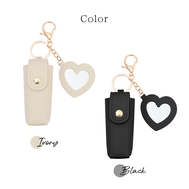 はんこ ハンコ おしゃれ 事務 かわいい 旅行ポーチ 口紅 化粧直し バッグチャーム ハートミラー リップポーチ リップ入れ アイボリー ブラック 持ち運び 携帯 敬老の日 父の日 母の日 クリスマス プレゼント ギフト