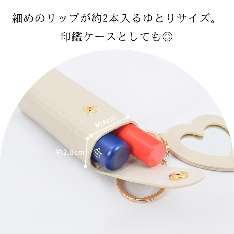 シャチハタ 印鑑 実印 印鑑ケース リップ リップケース 鏡つき ミラー付き ハート ミニポーチ リップホルダー トラベル 化粧 ポーチ ミラー ミニ キーホルダー