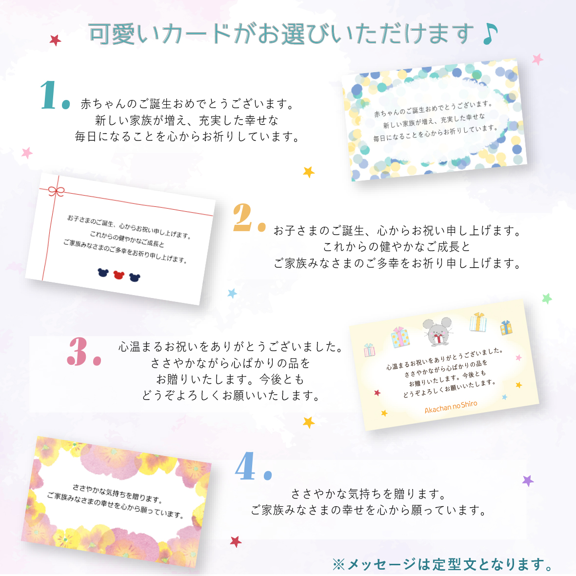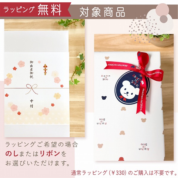 この商品は、無料でラッピングをお付けできます。のし包装か、リボン包装をお選びいただき、メッセージカードの種類をお選びください。