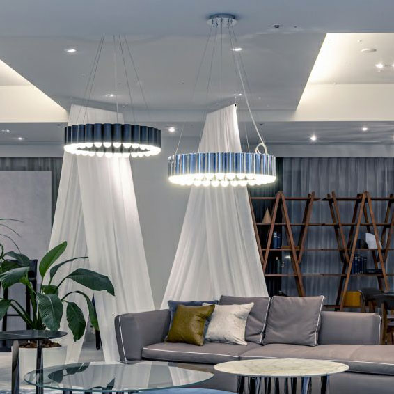 各シリンダーの光源から壮大かつ華やかなリング状の光が周りを照らし、柔らかな光が降り注ぎます。