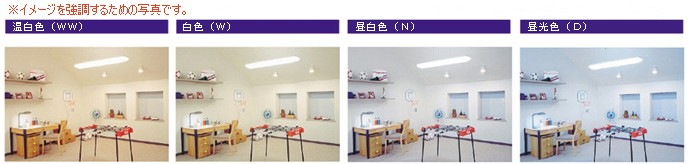 ・昼光色:白さがひきたつ昼光色。やや青味のある光色ですっきりとした白さを表現。