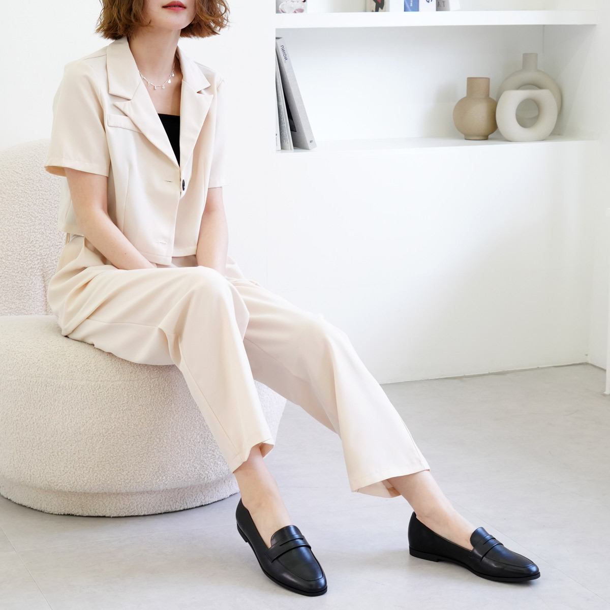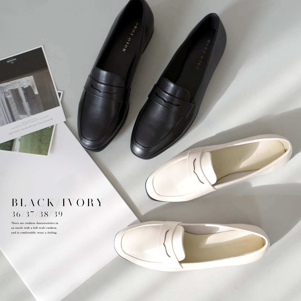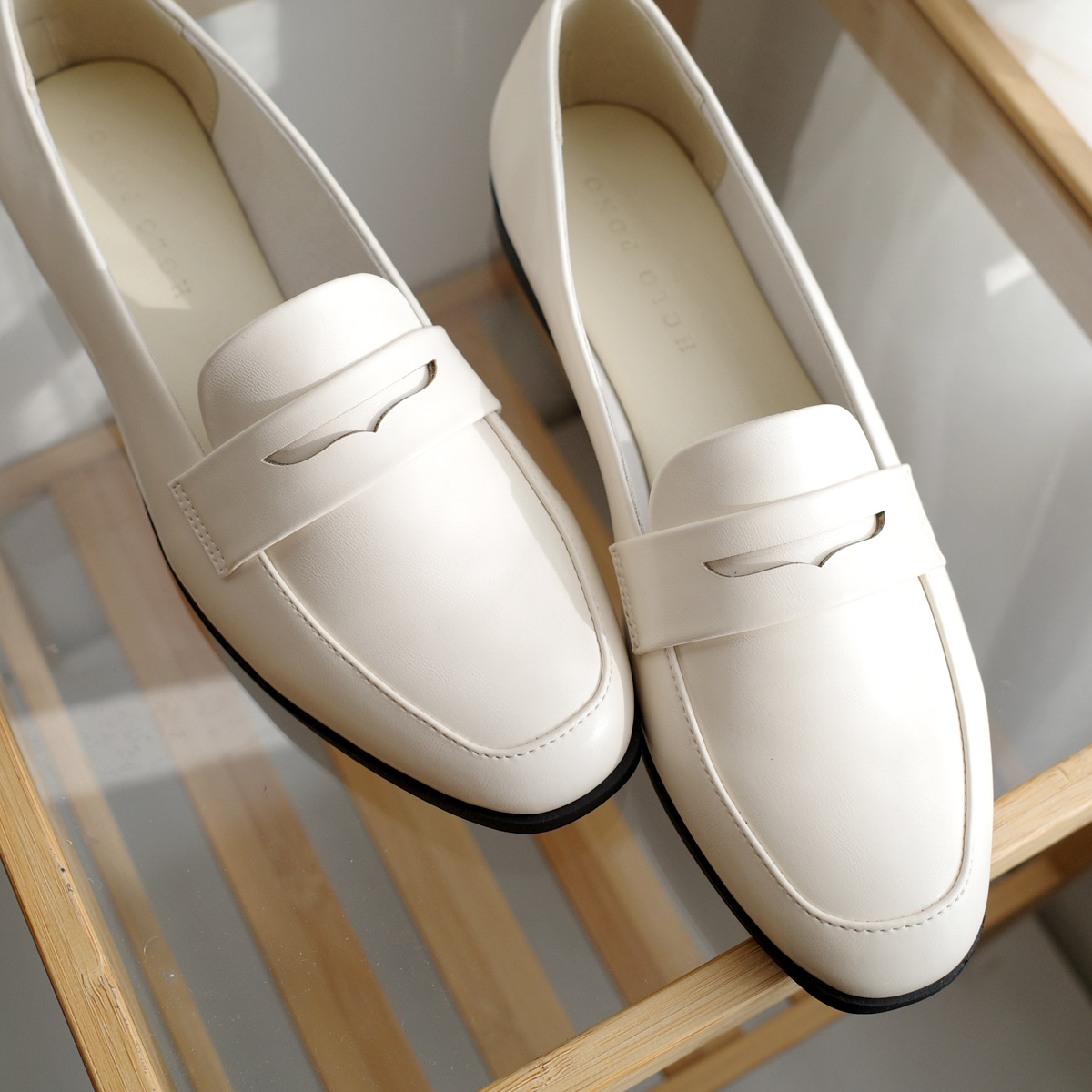 ON/OFF使える飽きのこないミニマルなデザインのコインローファー軽量でやわらかなアッパー素材で履きやすく快適な履き心地。