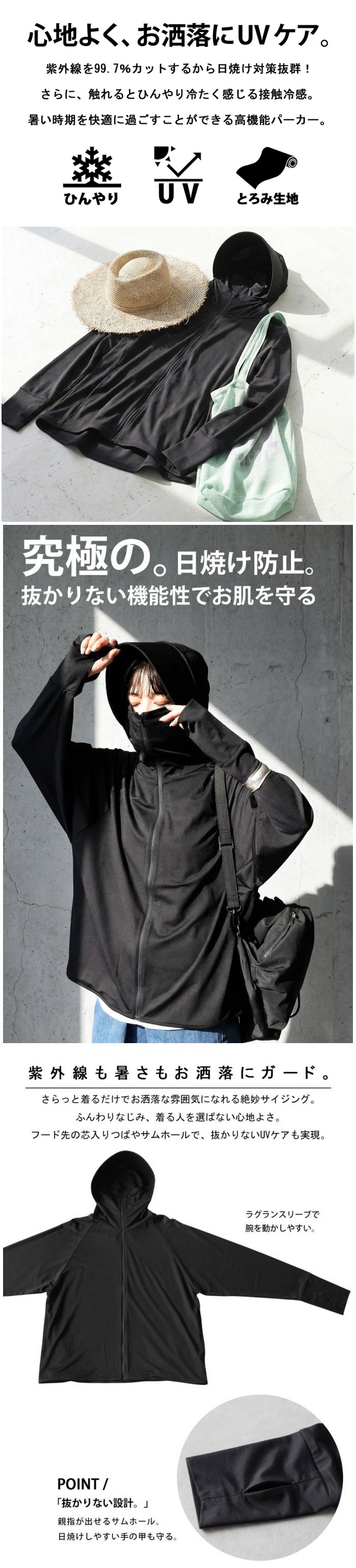 パーカー フード付き ジップアップ フェイスカバー 日焼け防止 UVカット 接触冷感 冷感素材 長袖 ポケット付き レディース 大きめ ゆったり ラグラン 袖口指穴 黒 くろ ブラック black フリーサイズ 春 夏 秋 春夏 秋冬 オールシーズン 紫外線対策 体型カバー ひんやり素材 ライトアウター ジップパーカー 顔カバー 首カバー 手の甲カバー ファスナー付き 前開き ライトパーカー 軽量 涼しい 羽織り 薄手パーカー 紫外線カット スポーツ観戦 自転車 運転対策 フード付きトップス UVカットパーカー サムホール付き マスク代わり 顔まで隠れる レディースパーカー 黒パーカー 涼感 アウトドア フェス レジャー 旅行 散歩 デイリー ワンマイル 在宅ワーク 通勤 通学 ママコーデ カジュアル モード ナチュラル 大人コーデ 春夏アウター 冷房対策 フード深め レディースアウター 紫外線カットウェア レディーストップス 紫外線カバー 冷感パーカー 紫外線予防 99.7%カット 顔までUV 手の甲ガード ヒップカバー おしゃれ羽織り 紫外線予防服 肌ケア フードデザイン 日焼け対策 春パーカー 夏パーカー 秋パーカー 無地パーカー オーバーサイズ ビッグシルエット スポーツMIX アンチUV フード広め マスクフード ハイネックパーカー レディース服 フードネック パーカージャケット ライトウェア ビッグパーカー 軽アウター 日除け ひんやりパーカー 軽アウター 黒アウター ファッション日除け UVウェア UVトップス ラッシュパーカー ファッションパーカー 衣類UVカット 日差しガード 夏羽織 フルジップ フードつきパーカー 紫外線ケア ひんやりフード アウター感覚 レディース夏服 夏服対策 ANTIQUA antiqua アンティカ あんてぃか antique annthika あんちくあ アンテイカ あんティカ