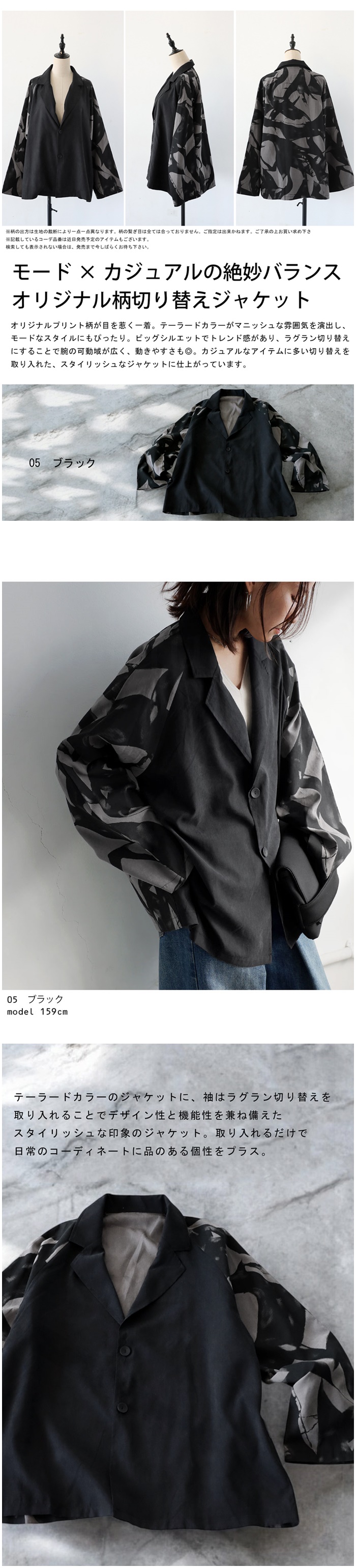 【検索ワード】柄切り替えジャケット ジャケット レディース アウター 羽織り 長袖 セットアップ ニュアンス柄 柄ジャケット 柄 無地 切り替え ドッキング オリジナルプリント テーラード テーラードカラー ラグラン ラグランスリーブ 前開き ボタン ポケット付き ゆったり シンプル きれいめ スタイリッシュ モダン モード 体型カバー 細見え 着痩せ ビッグシルエット 大きめ 大きいサイズ テーラードジャケット 軽アウター ライトアウター ユニセックス antiqua treecafe アンティカ ツリーカフェ 大人 おしゃれ 10代 20代 30代 40代 50代 60代 春 秋 冬 お洒落 カジュアル かわいい かっこいい あんてぃか