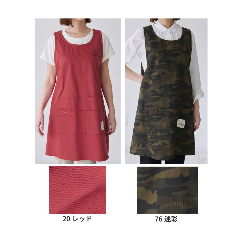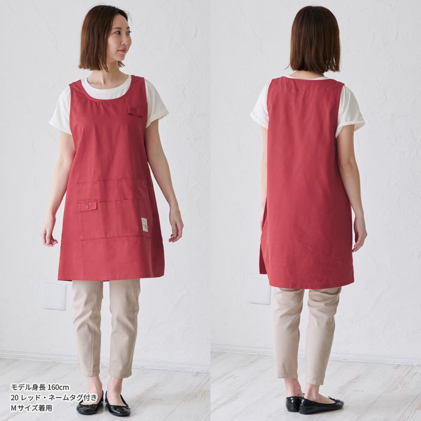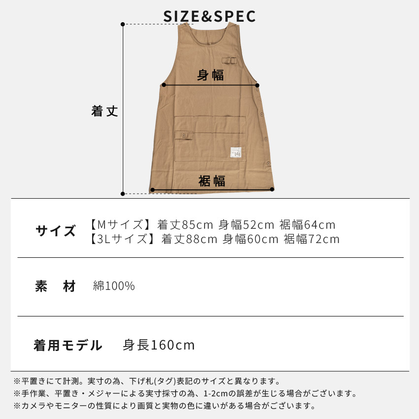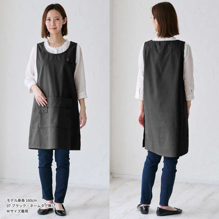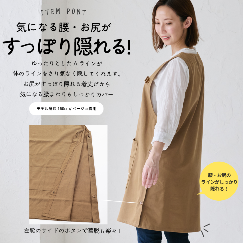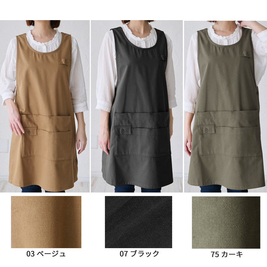 M〜3Lサイズ お尻が隠れる ワンピース エプロン 綿混 ダブリエ 保育士 カフェエプロン ロング かわいい 無地 ギフト サロン レディース M 3Lサイズ 大きいサイズ