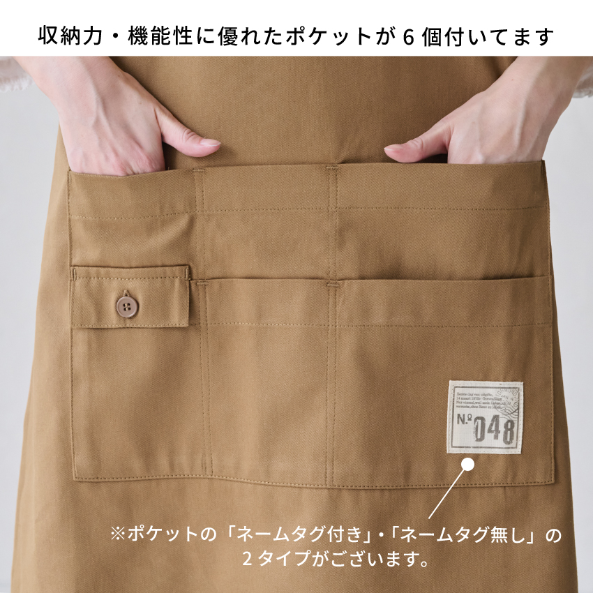 こちらのエプロンはポケットの 「ネームタグ付き」・「ネームタグ無し」の 2タイプがございます。 ご購入の際にはお気を付けください