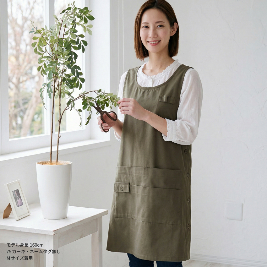 おしゃれ エプロン シンプル 無地 女性 保育士 キッチン