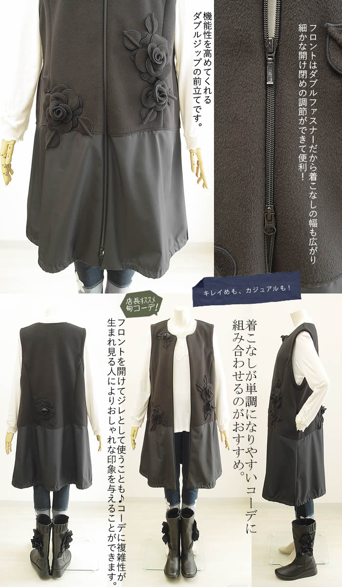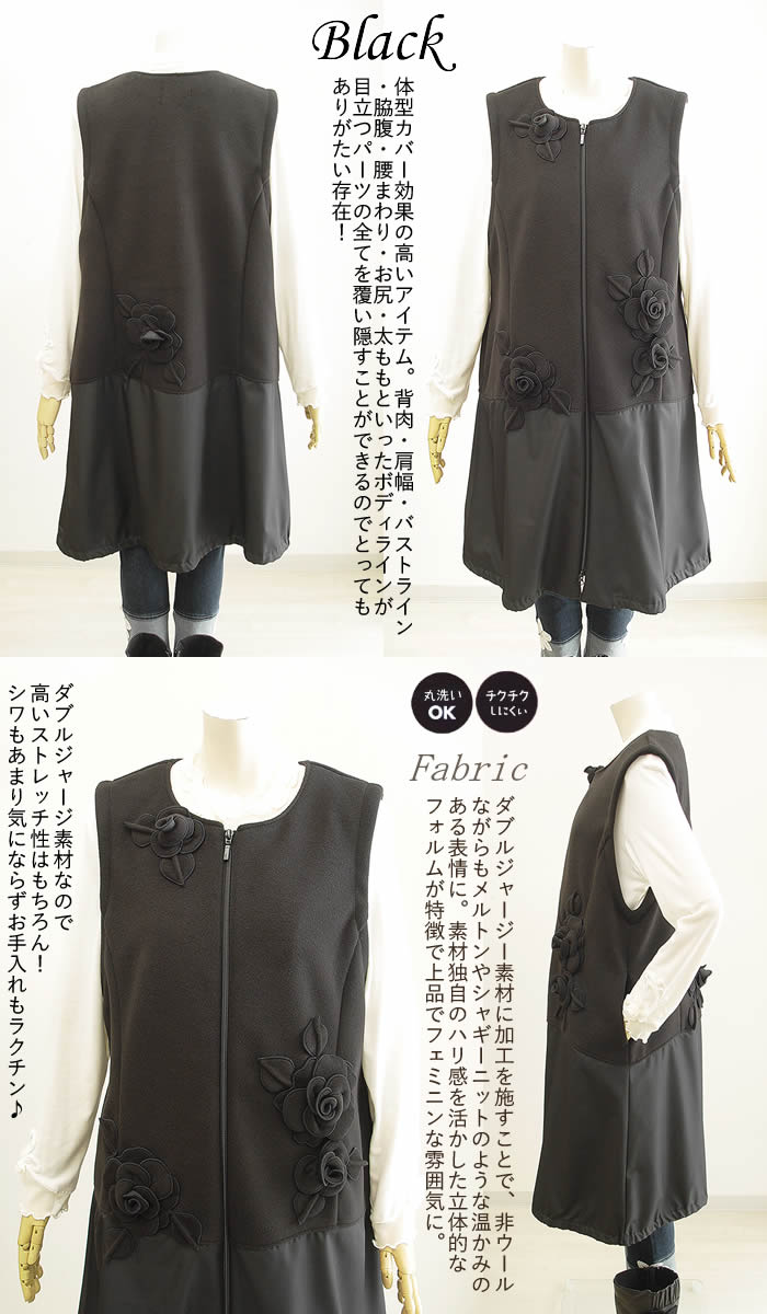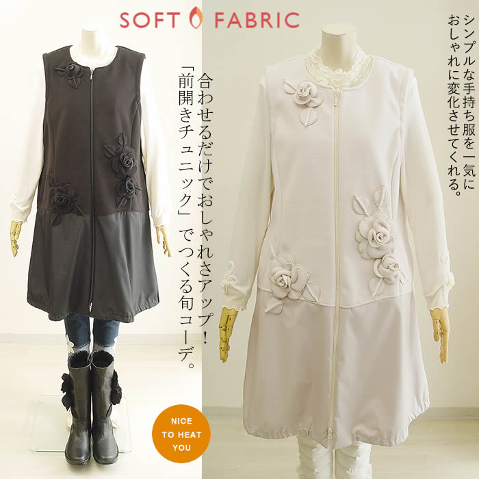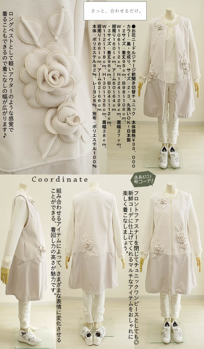 ベルパーチ Belpaci お花ニードルジャージ前開き切替チュニック 日本製 レディース チュニック チュニックワンピ ニット ロングベスト ジレ ベスト 春 秋 冬