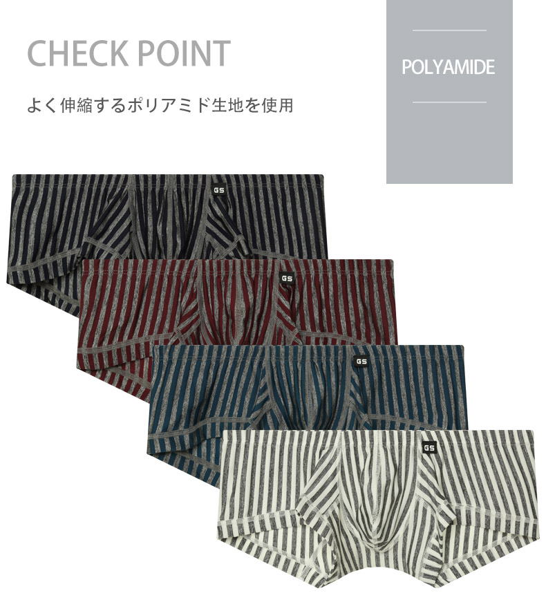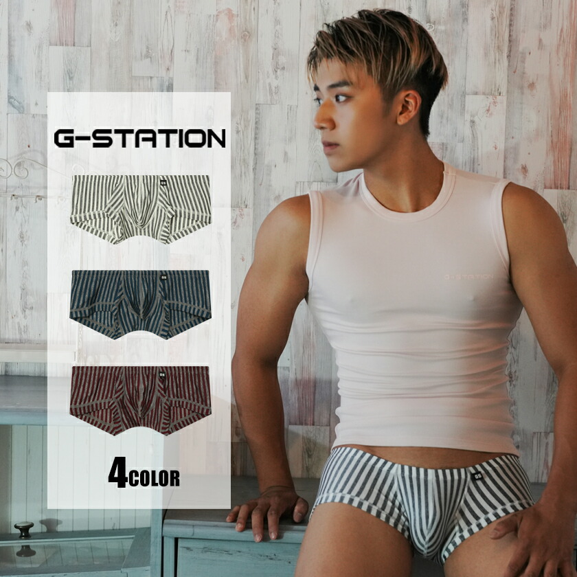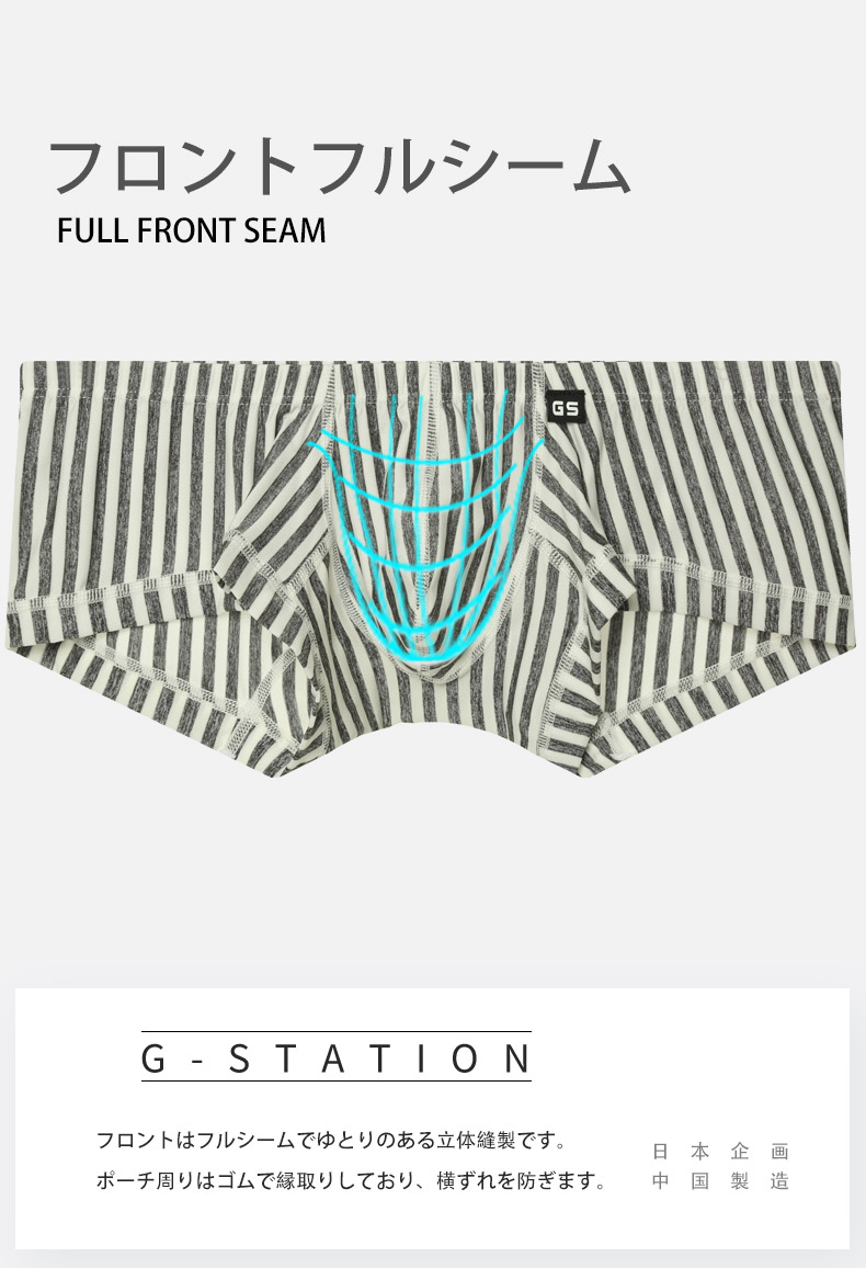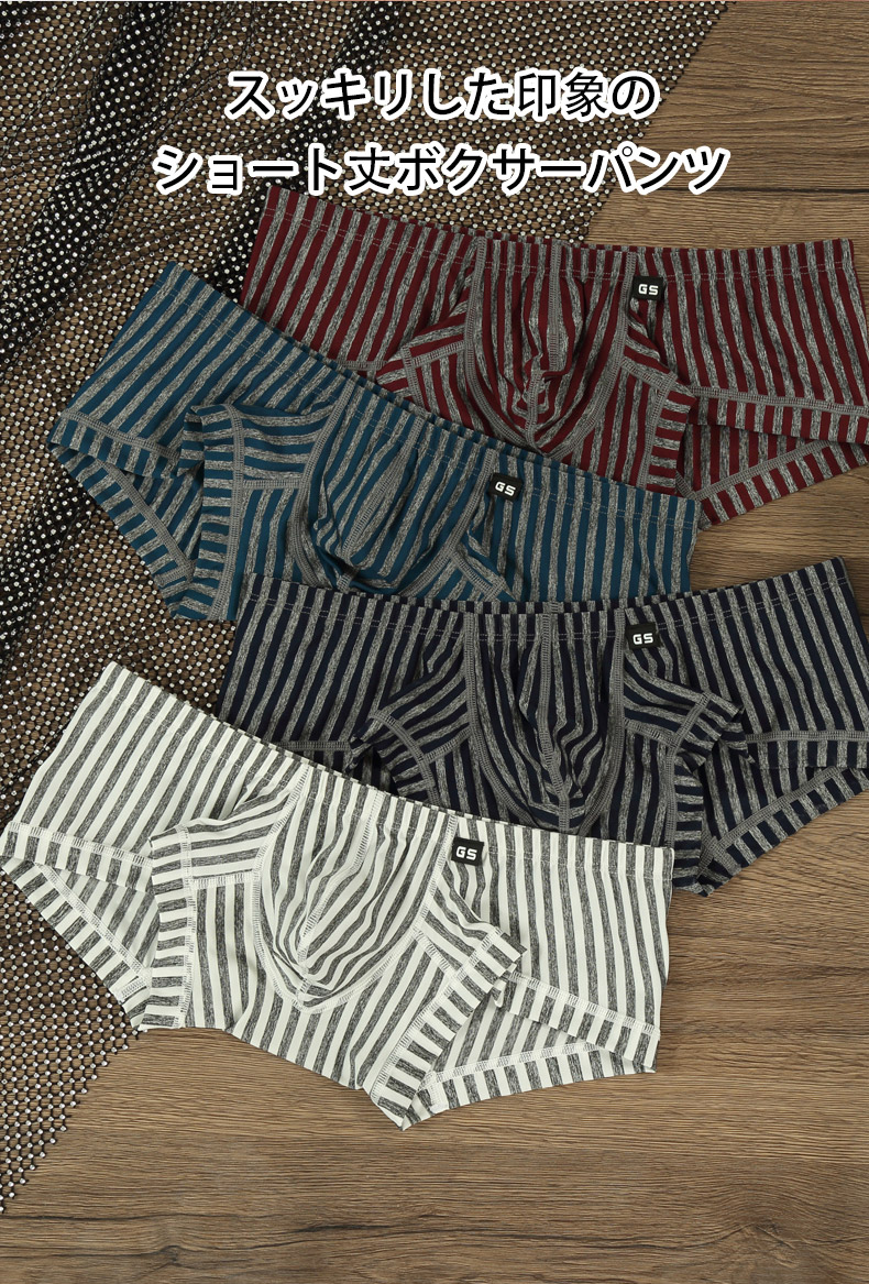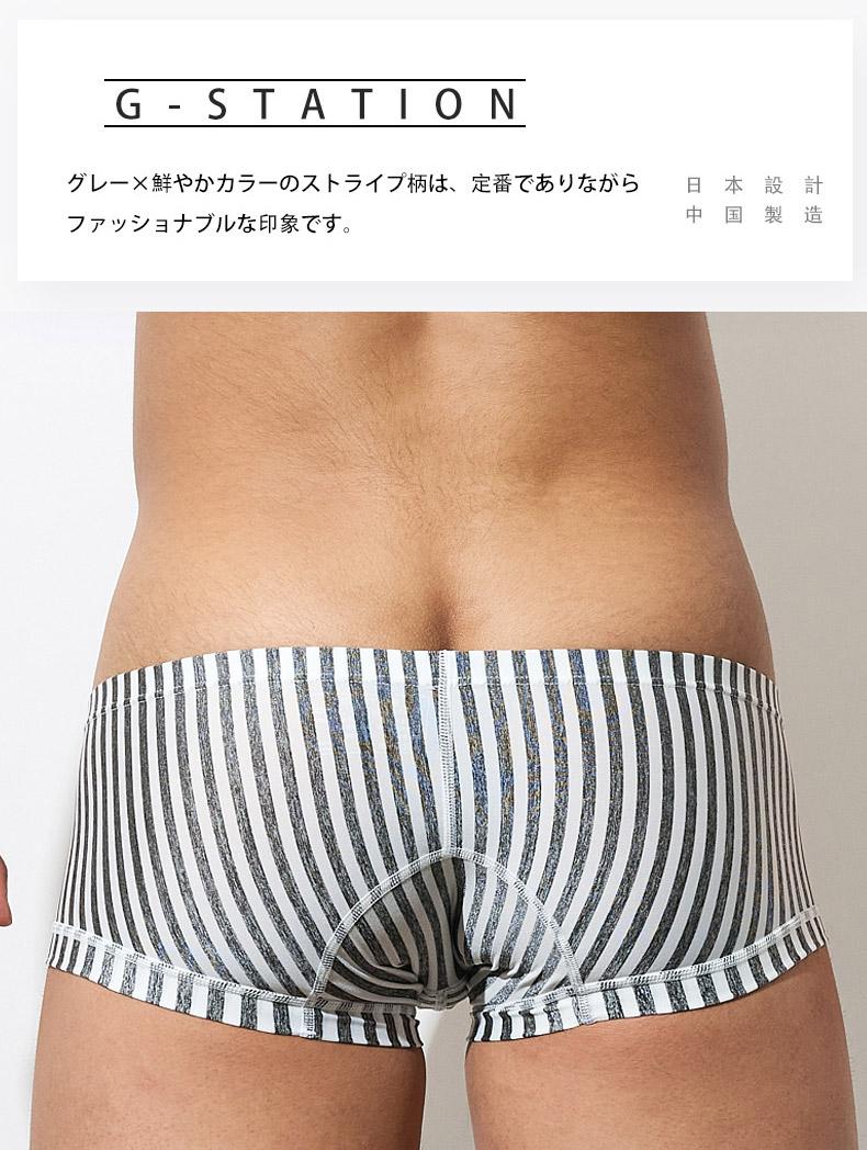 メンズボクサーパンツ G-Station/ジーステーション グレーストライプ ショート丈 スクエアボクサー 縦縞 縞 立体縫製 男性下着