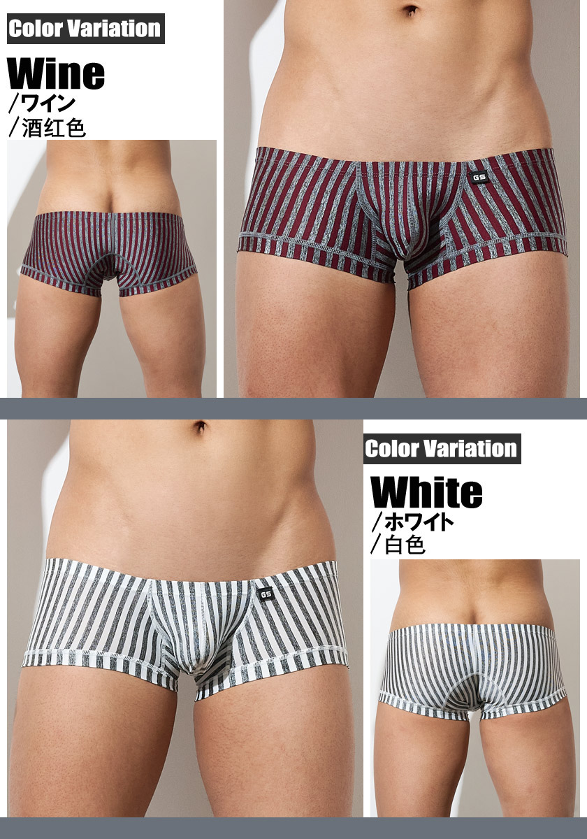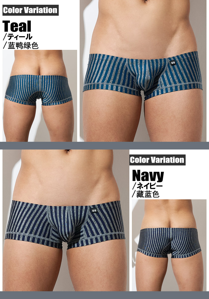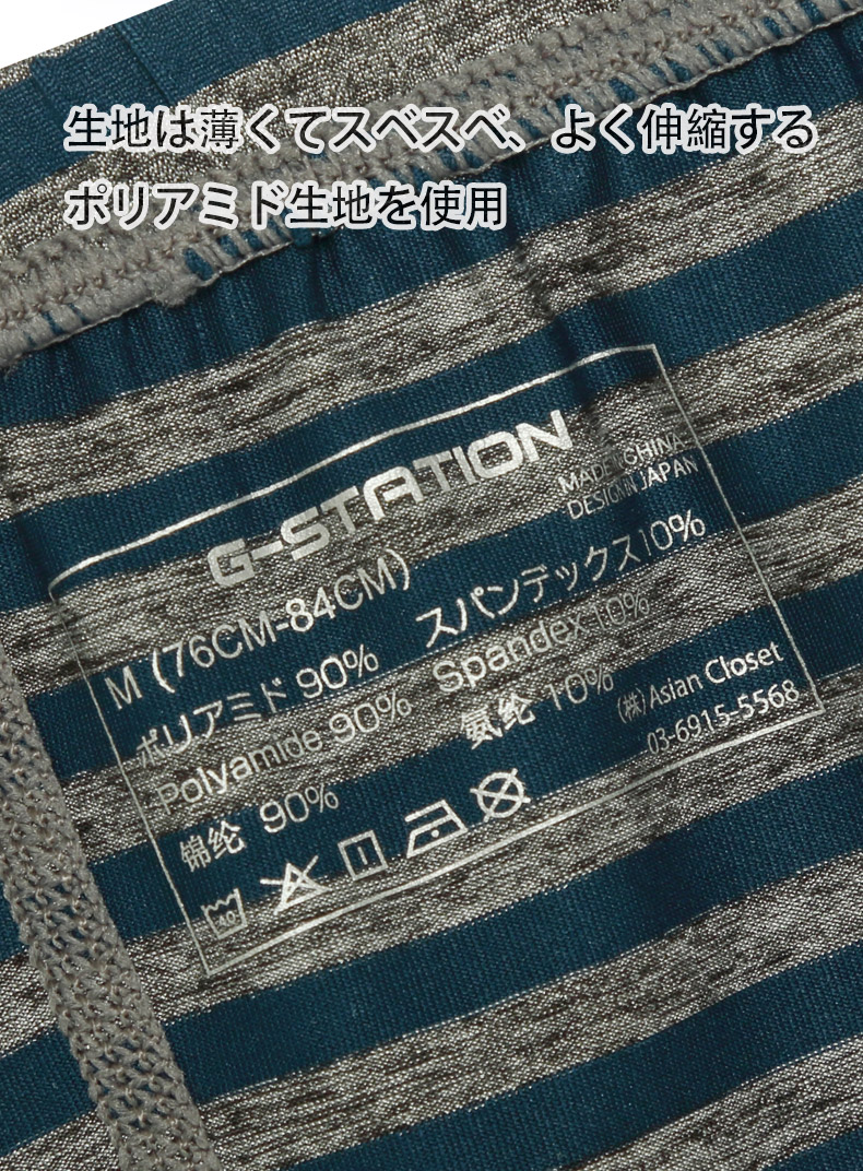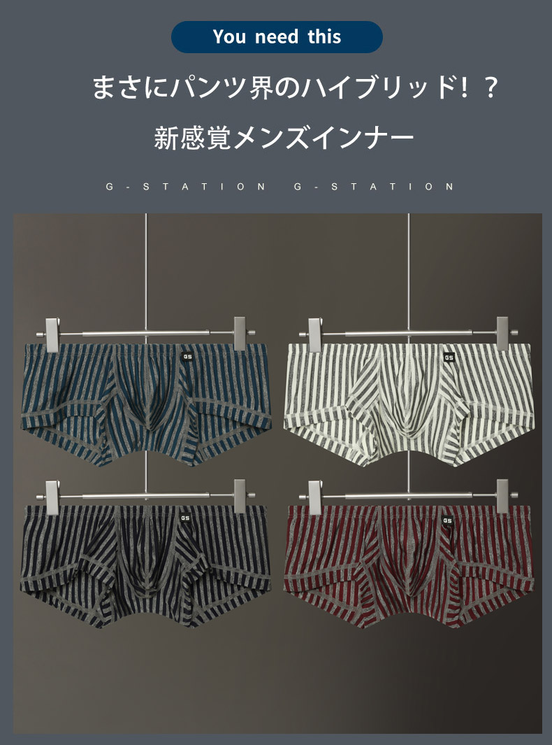 メンズボクサーパンツ G-Station/ジーステーション グレーストライプ ショート丈 スクエアボクサー 縦縞 縞 立体縫製 男性下着