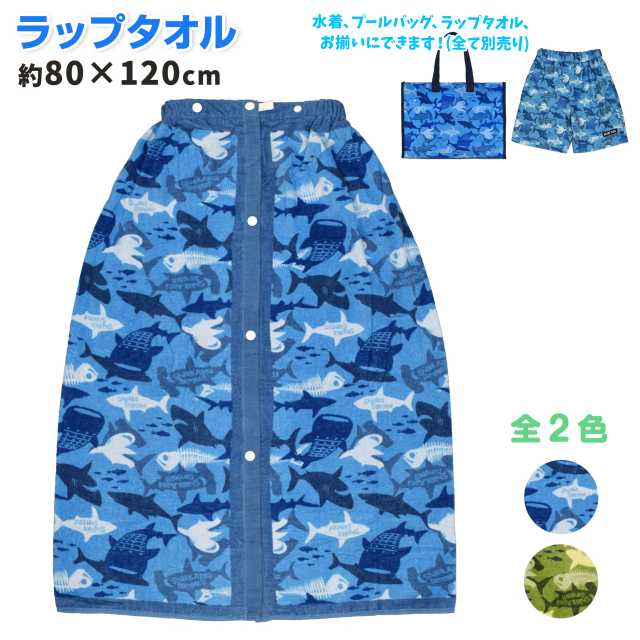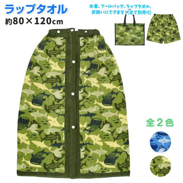 (メール便送料無料)巻きタオル 子供 80cm キッズ ジュニア 子供 男の子 シャーク カモフラ スナップ付