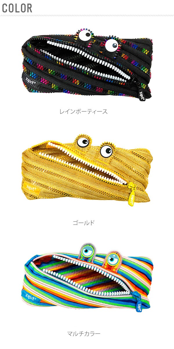 ペンケース おしゃれ 女子 通販 中学 高校 トロイカ モンスターペンケース レインボーティース 筆箱 ポーチ 小物入れ ゴールド マルチカラー かわいい キッズ 子供 セレブリティーファミリー ユニーク ジップイット [* ☆goods *]