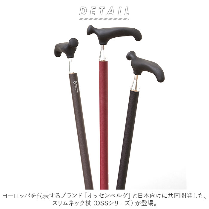 ・ヨーロッパを代表するブランド「オッセンベルグ」と日本向けに共同開発した、スリムネック杖(OSSシリーズ)が登場。