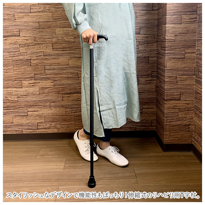 ・スタイリッシュなデザインで機能性もばっちり!伸縮式のリハビリ用T字杖。