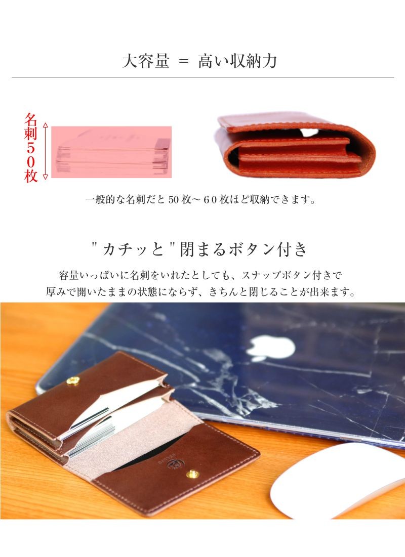 ・シンプルで美しい外観と大容量の収納力を兼ね備えた本革名刺ケース。合成皮革では味わえない経年変化を楽しみながらご愛用ください。