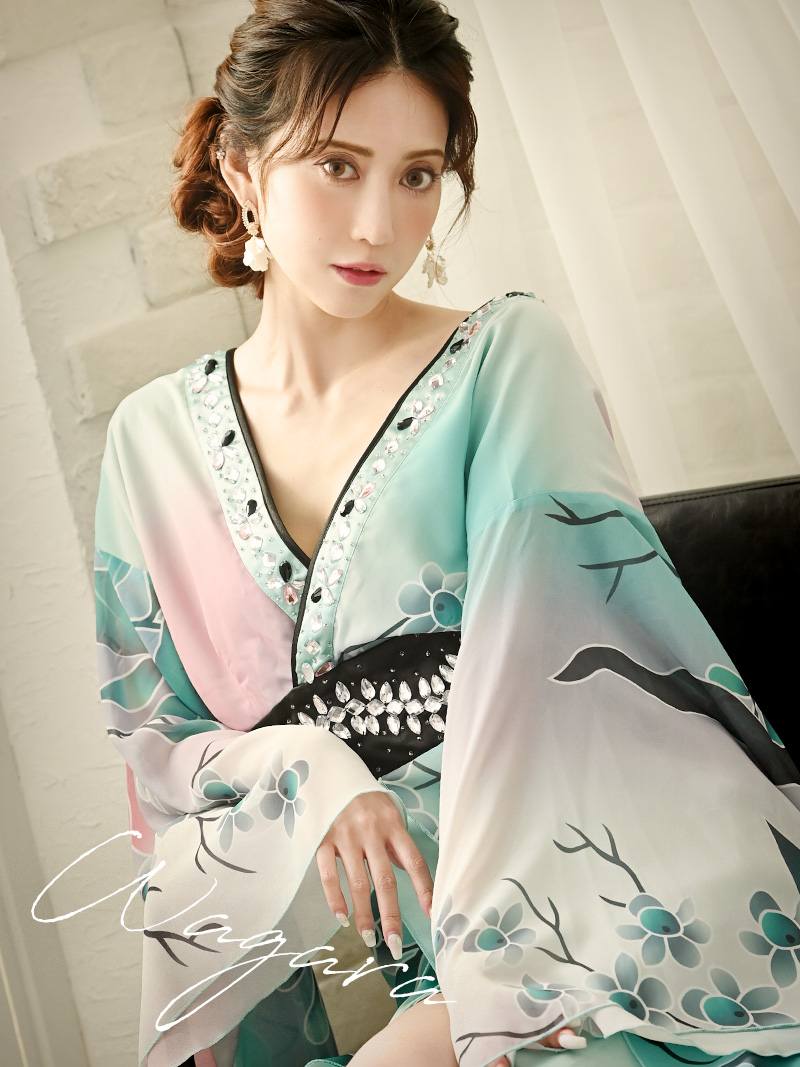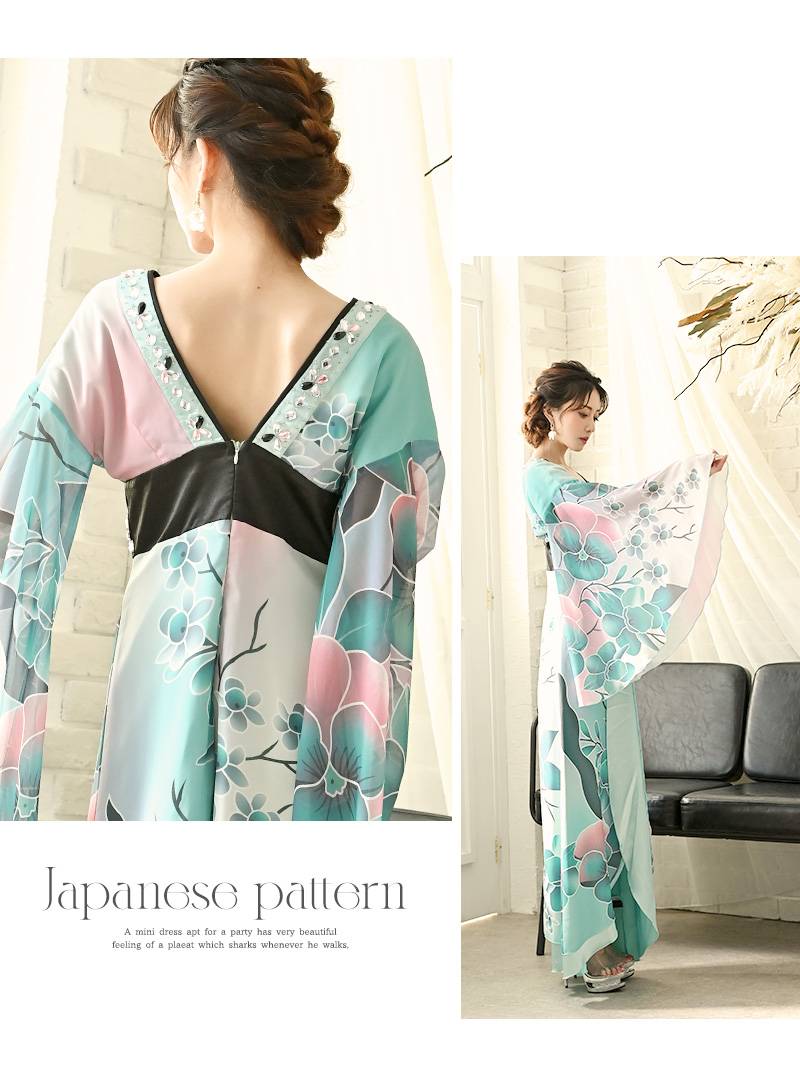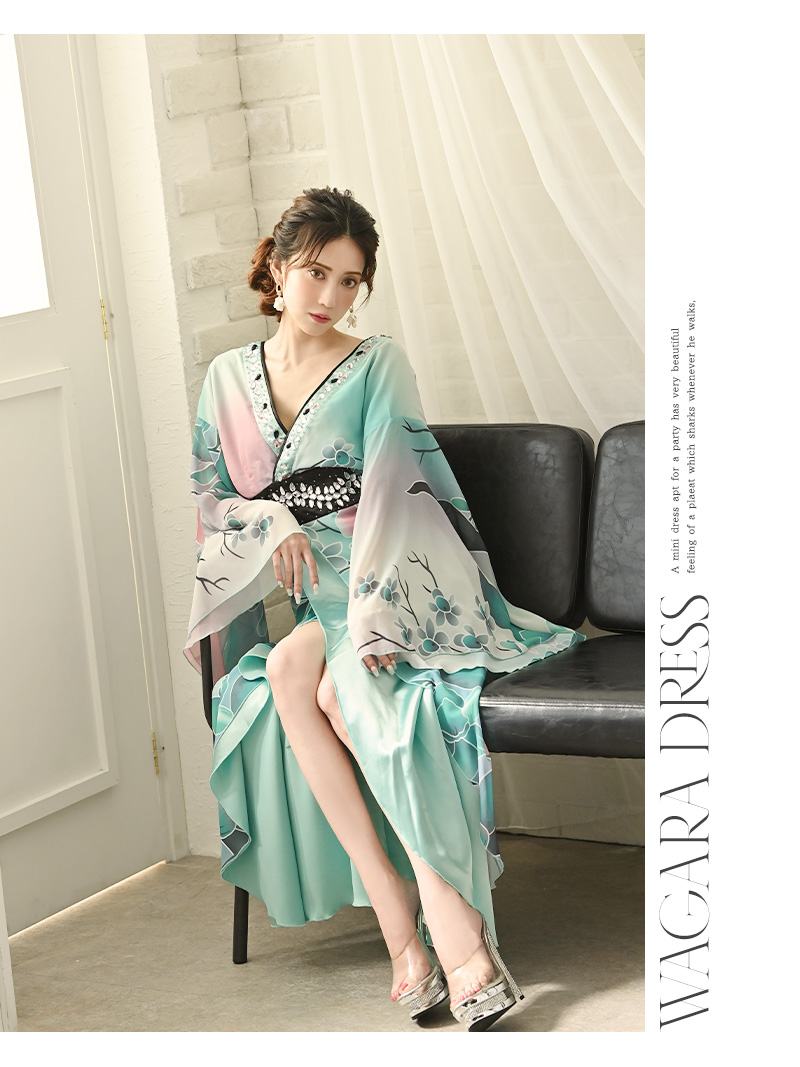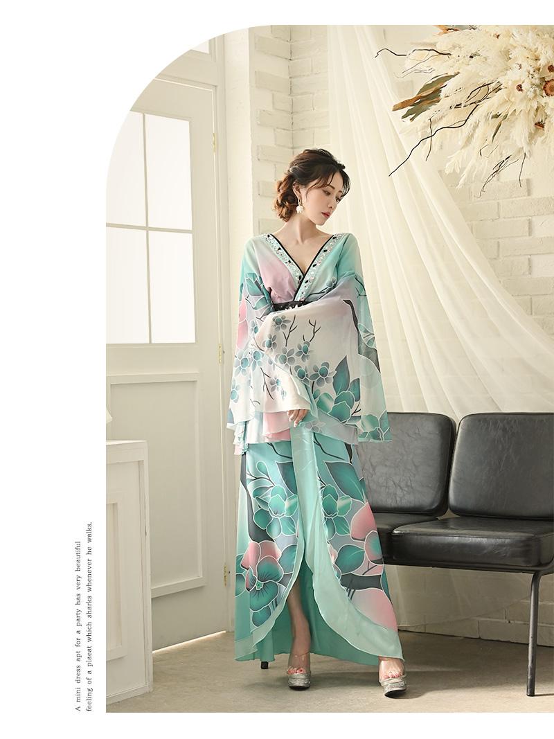 ☆大人の魅力を引き付けるオリジナルのグラデーション花柄着物ドレスはキャバクライベントなどコスプレにもご活用♪