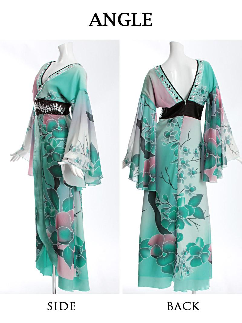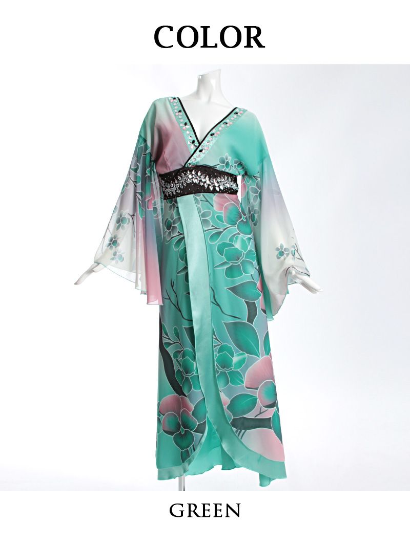 ロングドレス 着物ドレス キャバクラ 緑 花魁ドレス