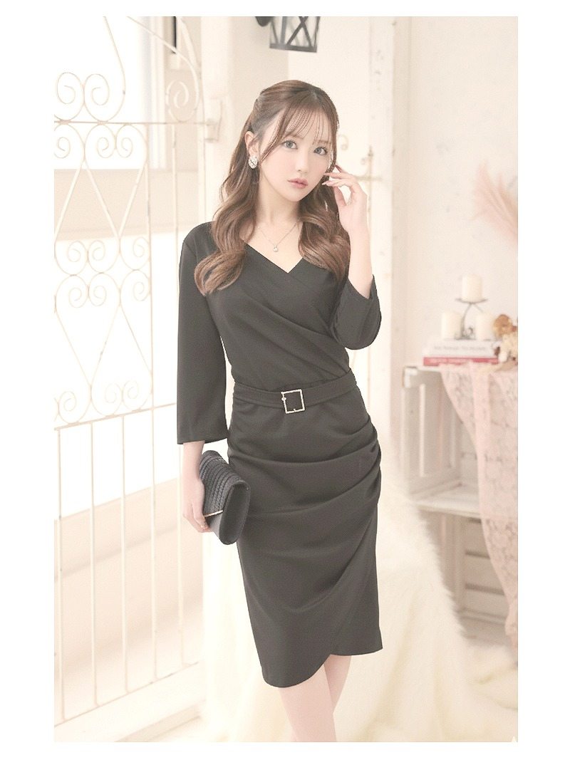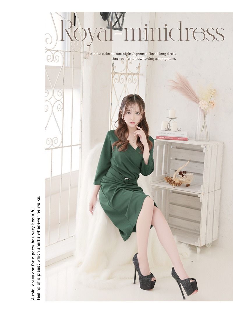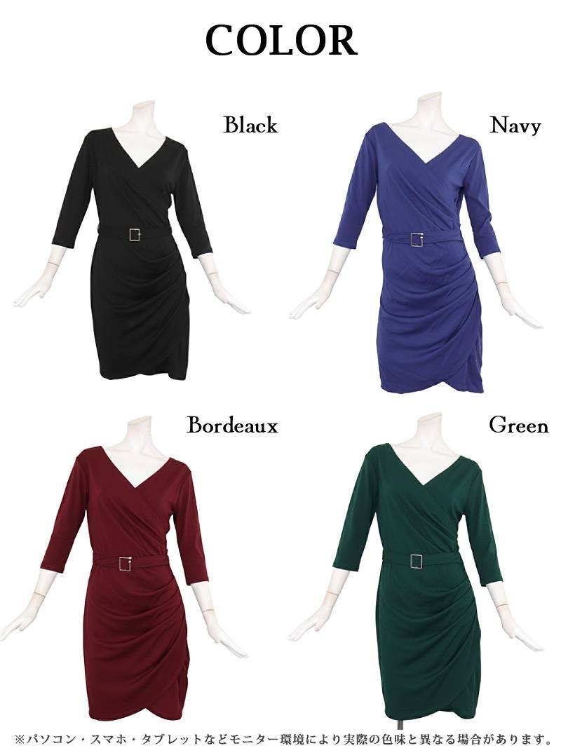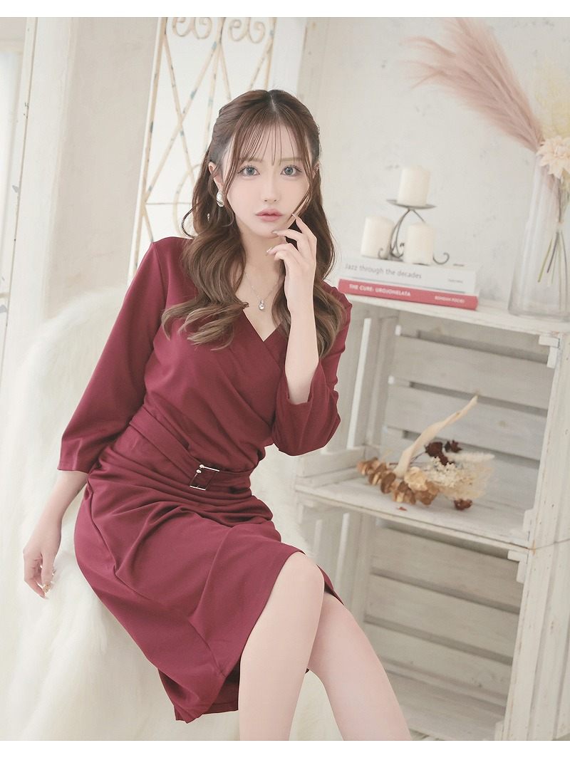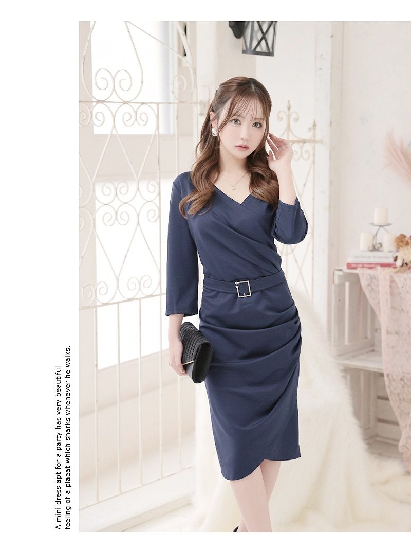 一部予約販売 キャバ ワンピース ワンピ キャバワンピース レディース パーティードレス RyuyuChick カシュクール 七分袖 袖付きワンピース