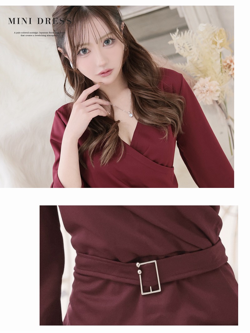 ☆深めのカシュクールが、お顔周りをすっきりとシャープな印象に見せてくれます。