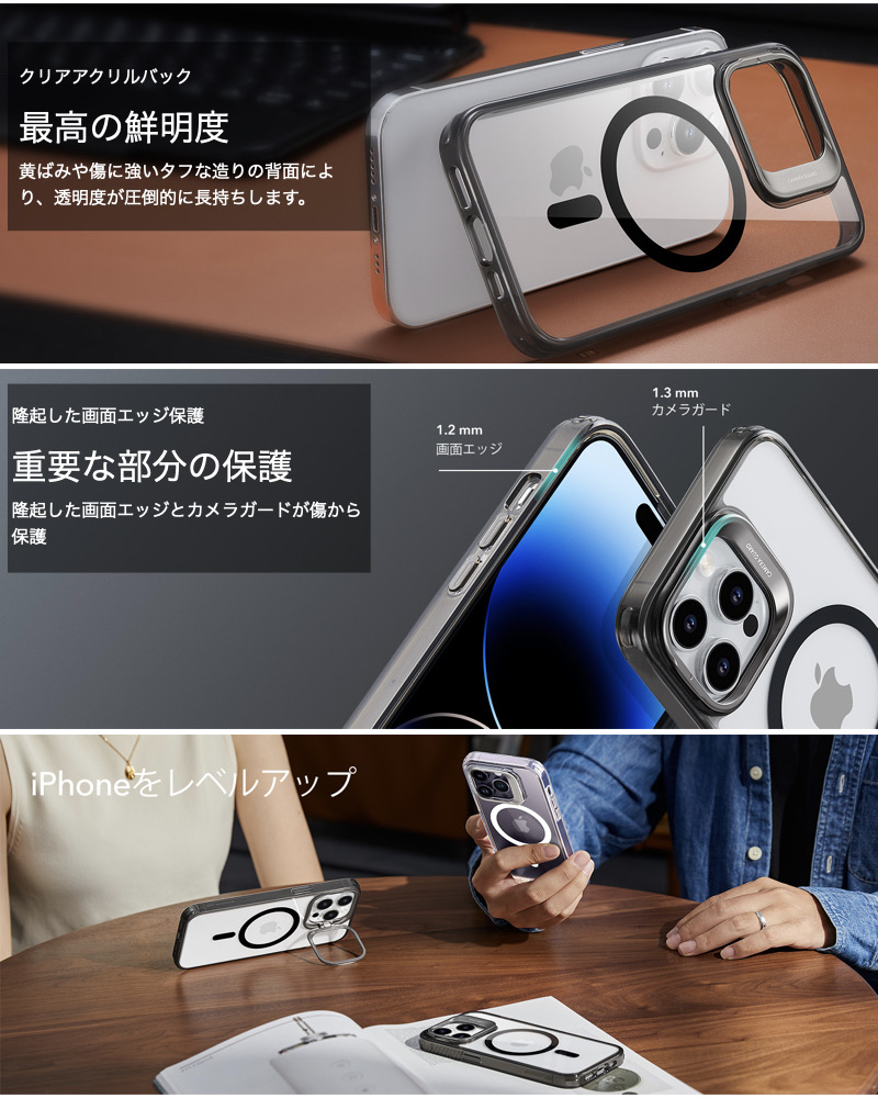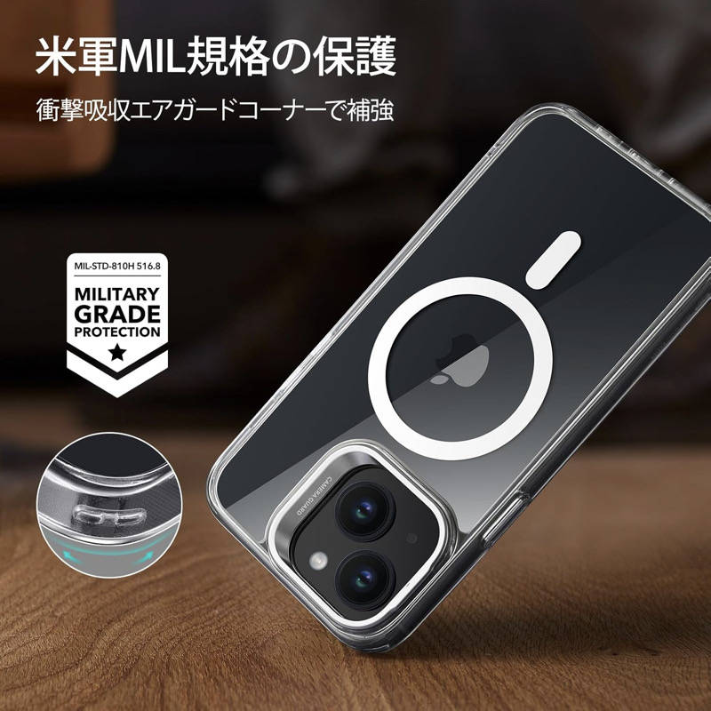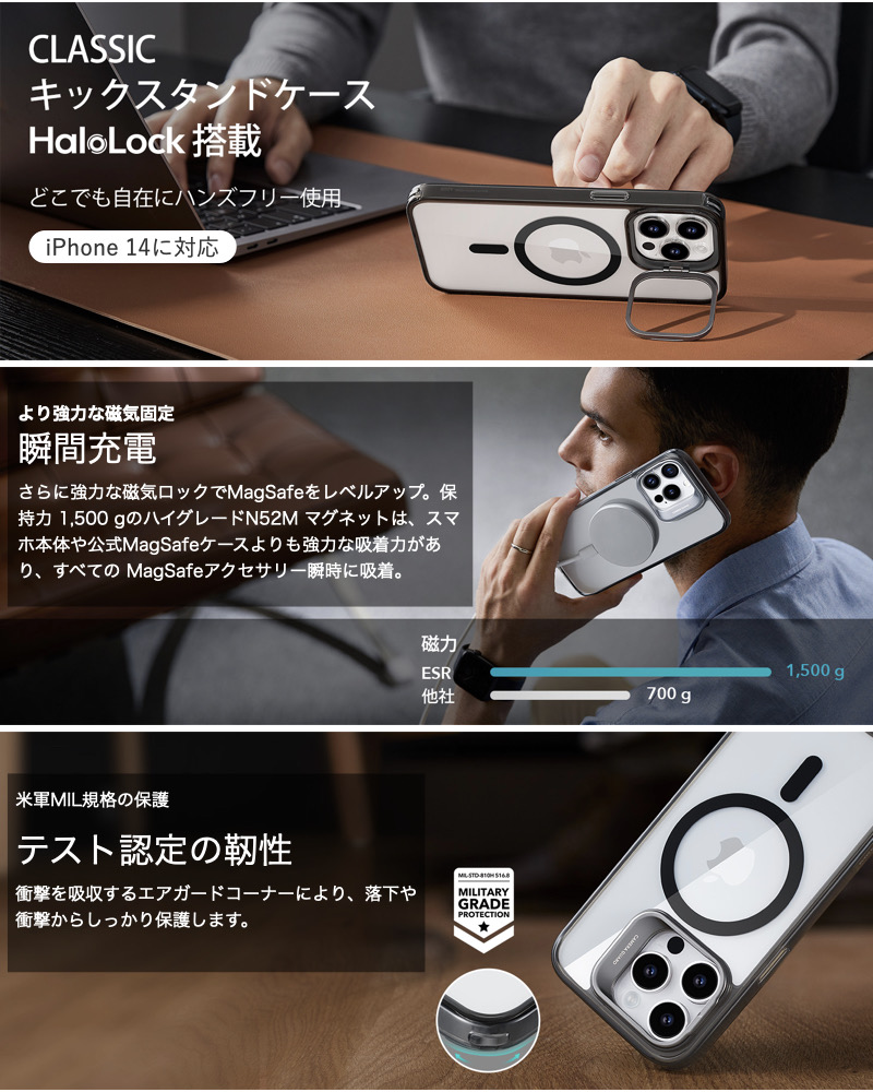 ESR iphone14 ケース/iPhone13 ケースは1,500 gの吸着力を持つ強力な内蔵磁石により、iPhone 14の8倍以上の重量を吸着可能です。車運転中の激しい振動でもMagsafe車載ホルダーから外れることなく、10000mAhのモバイルバッテリーを付けでも落としません。