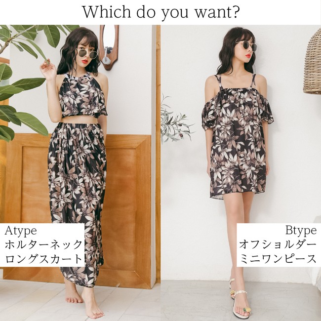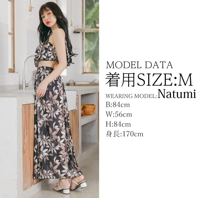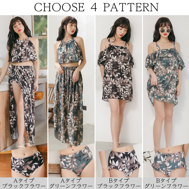 人気の大判花柄の3点セットビキニ。ロングスカートとワンピースがそれぞれセットになって登場☆