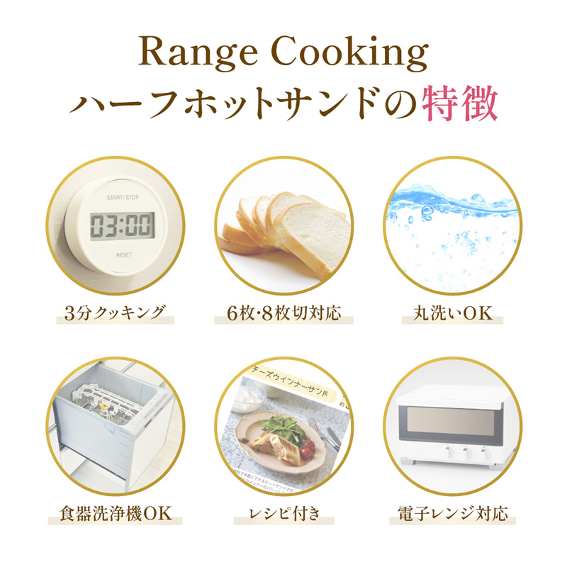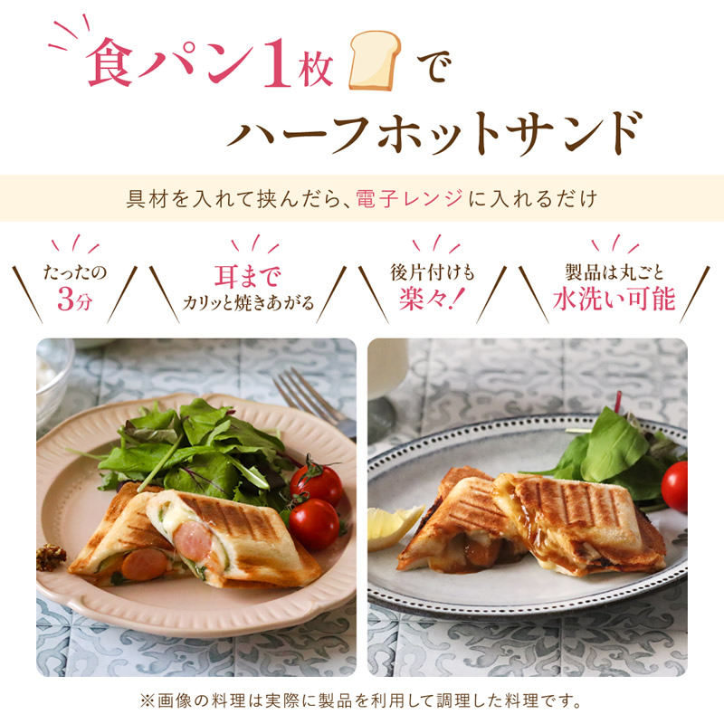 ハーフホットサンドメーカー レシピ付き SA031 (送料無料) ホットサンド 調理器具 電子レンジ対応 コンパクト 水洗い 丸洗い 食洗器対応 パン焼き器 プレゼント