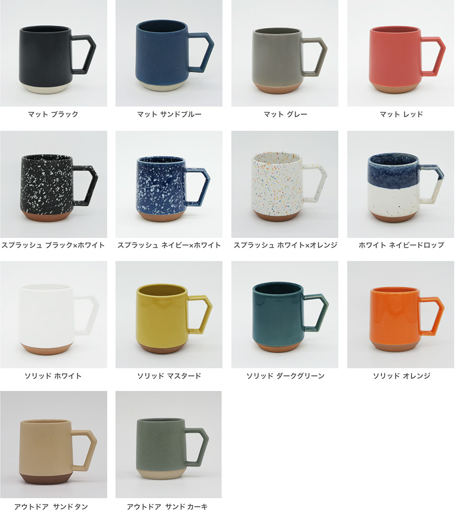 チップスマグシリーズは、技法や釉薬、マットや艶ありなど様々なバリエーションで展開しています。