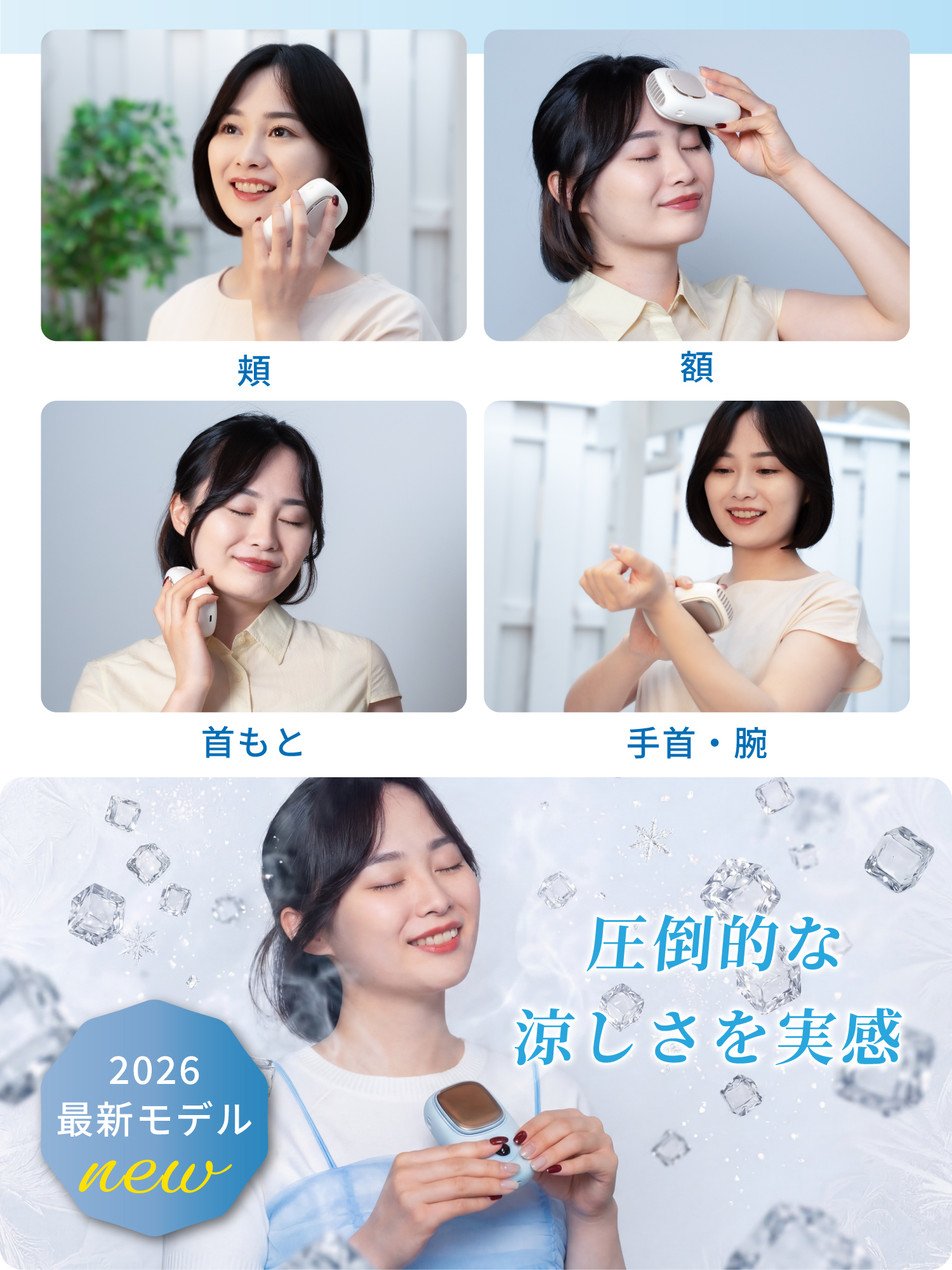 ・送風+直接冷却のW効果で瞬間ひんやり体感