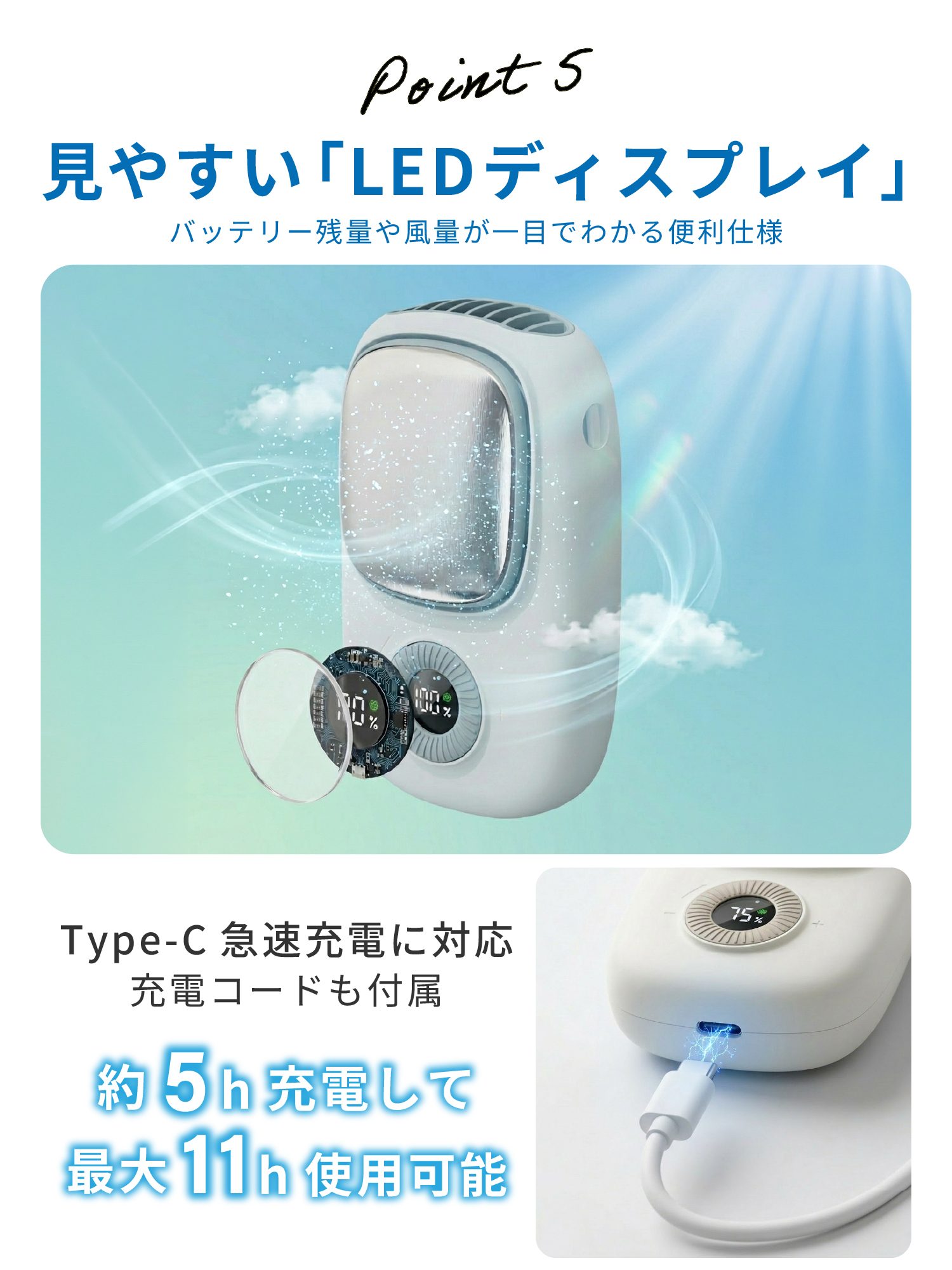 大型冷却プレートを搭載した、送風+直接冷却ができる次世代ハンディファン。