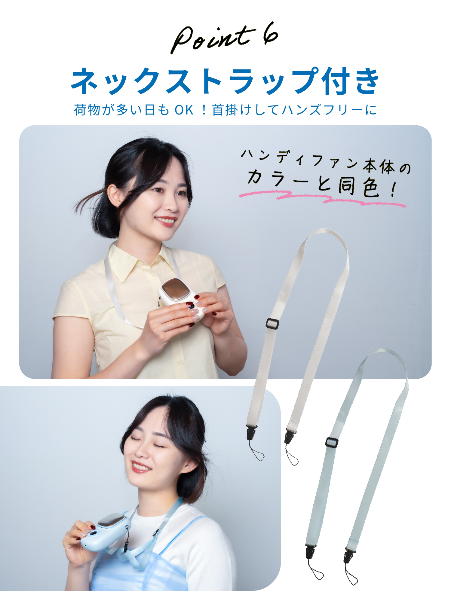・ネックストラップ付きで首掛けハンズフリー使用可能