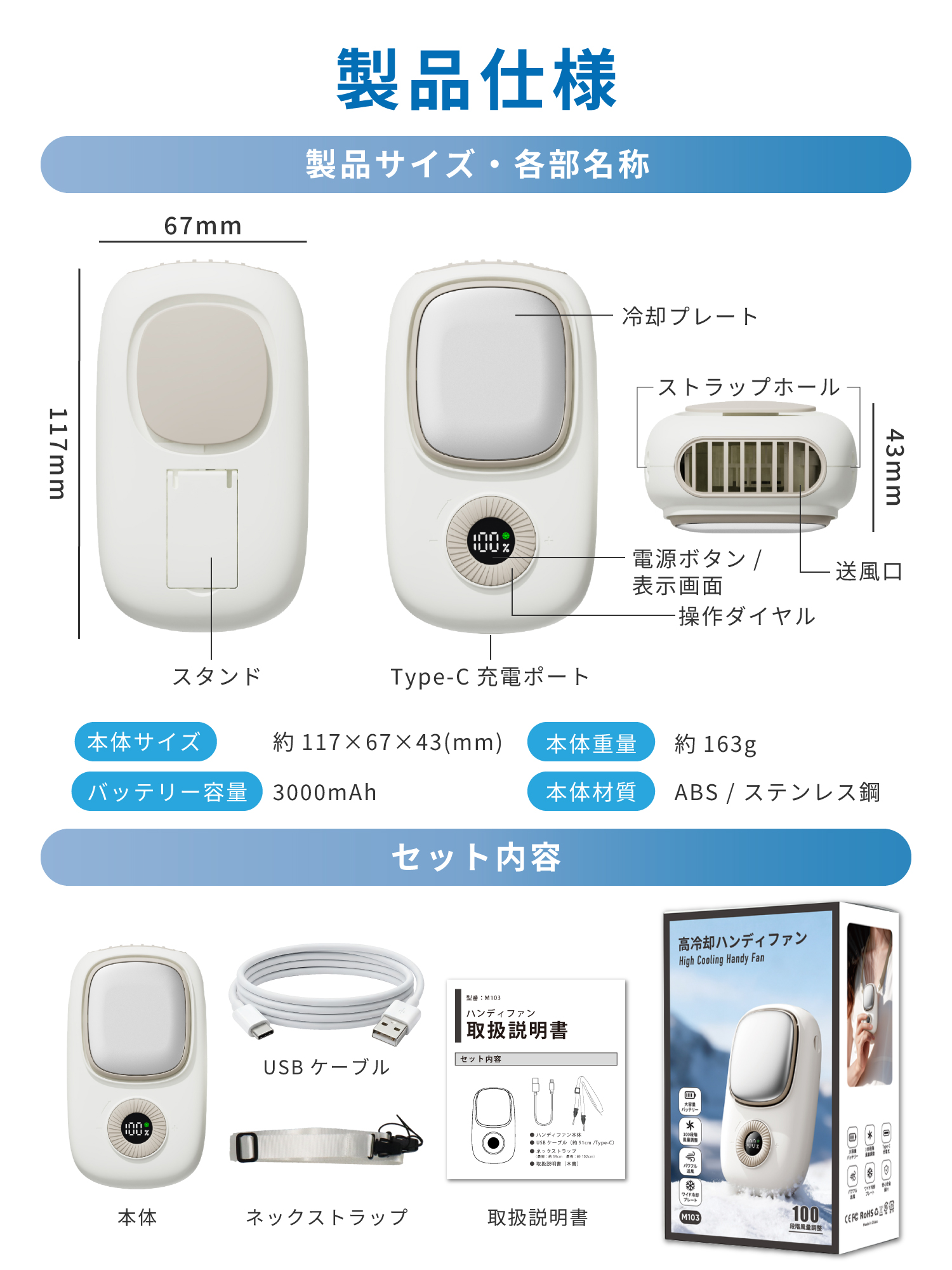 本体 / USBケーブル(約51cm / Type-C) / ネックストラップ(最短:約59cm 最長:約102cm) / 日本語取扱説明書