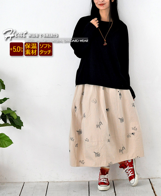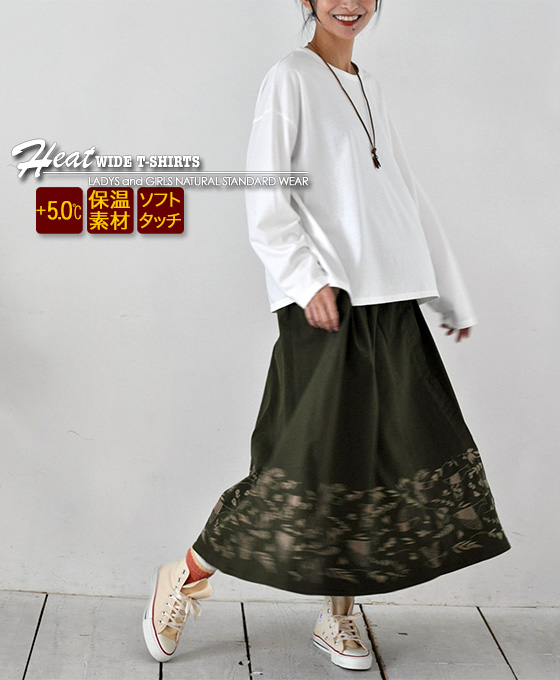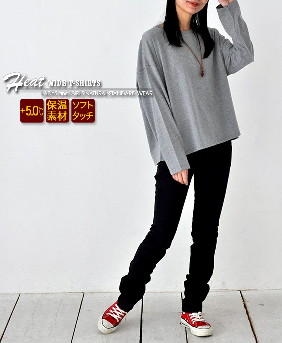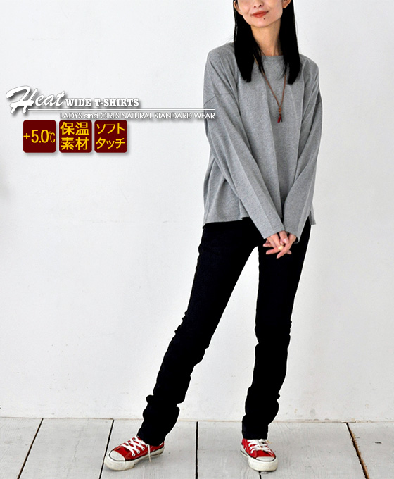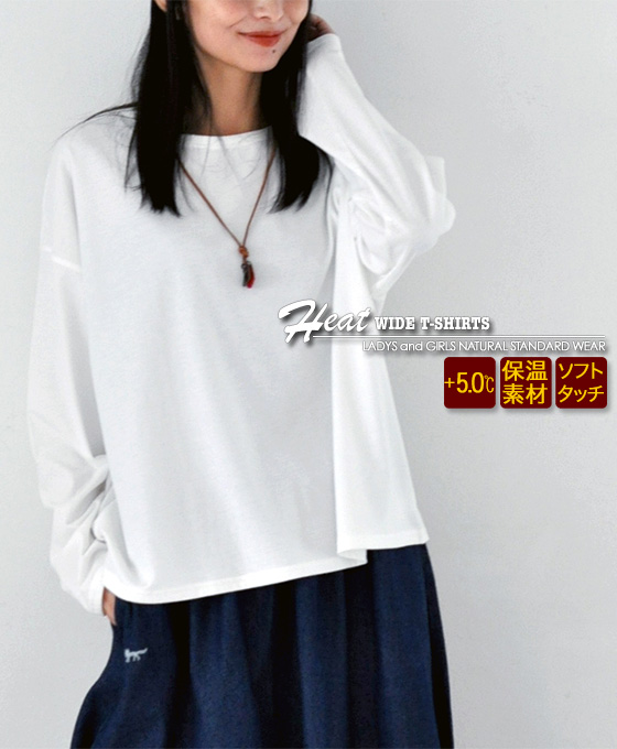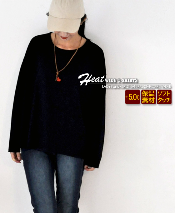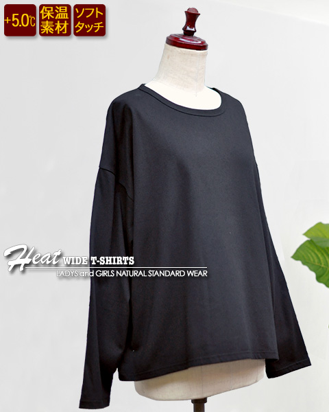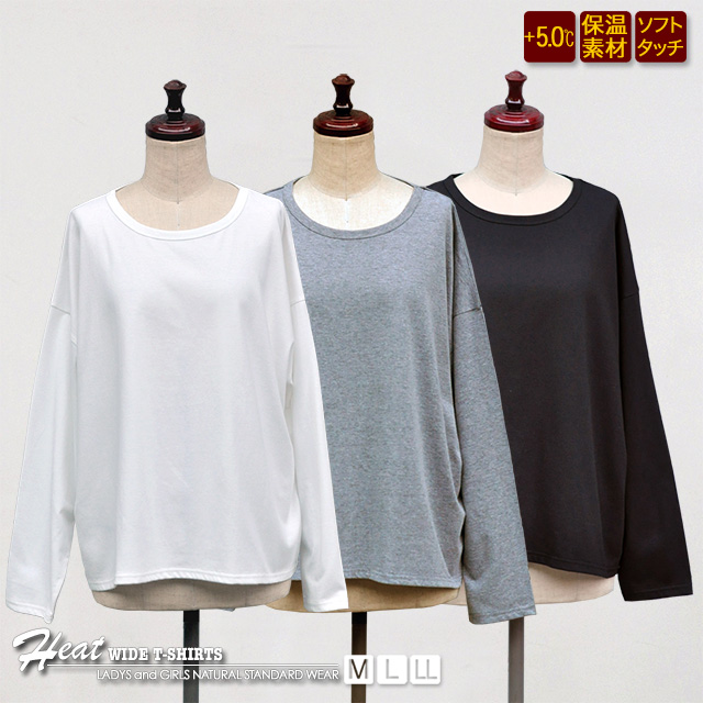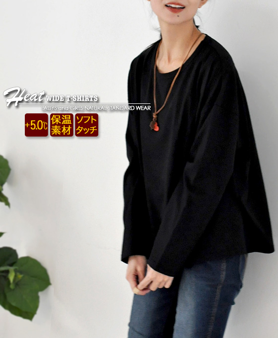 ロンT ヒート 温熱効果 +5.0℃ 保温 天竺 軽量保温 温暖 クルーネック 体型カバー ビッグ 大きいサイズ 長袖 シンプル ゆったり 軽い レディース 無地 秋 冬 春 カジュアル ナチュラル 大人カワイイ 重ね着 M L LL 2L お家コーデ 楽チン