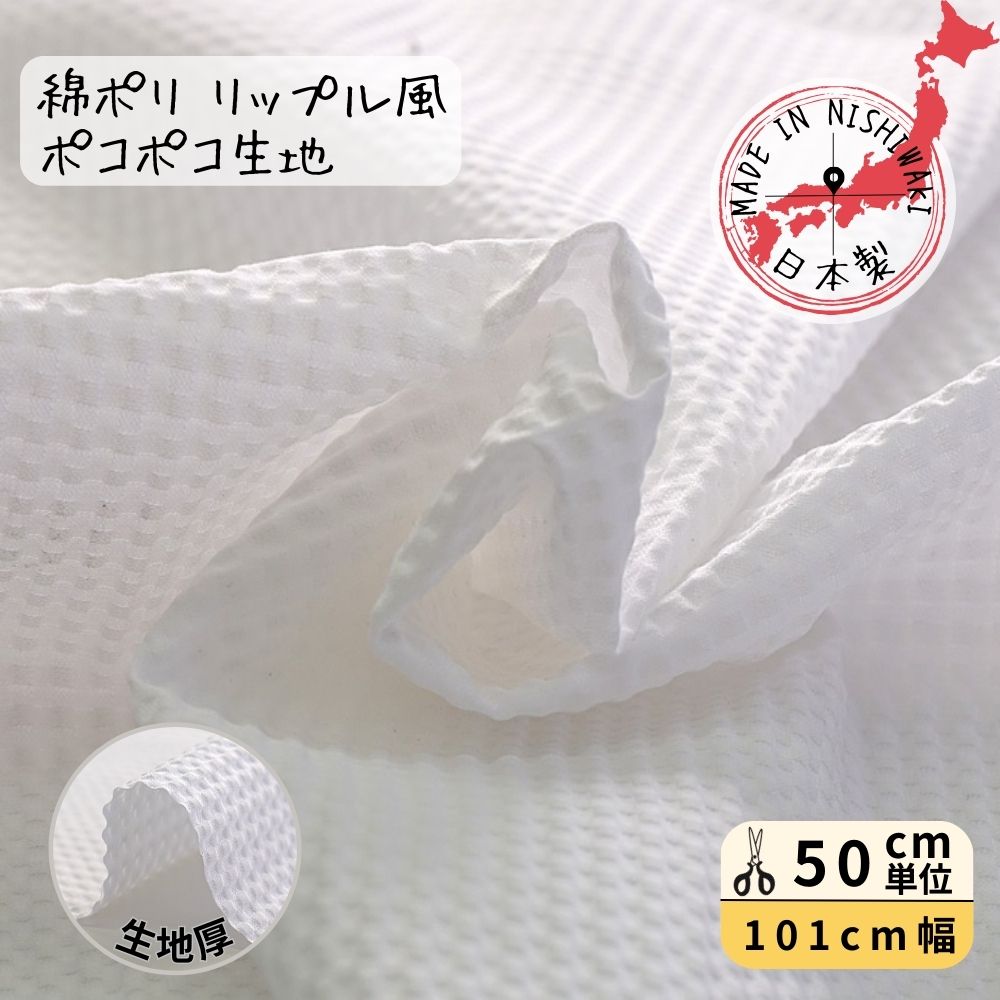 リップル生地 日本製 101cm巾 布 ポリエステル 綿ポリ ポコポコ 涼しい 涼し気 サラサラ 柔らかい 手芸 ハンドメイド 50cm単位 カットクロス はぎれ