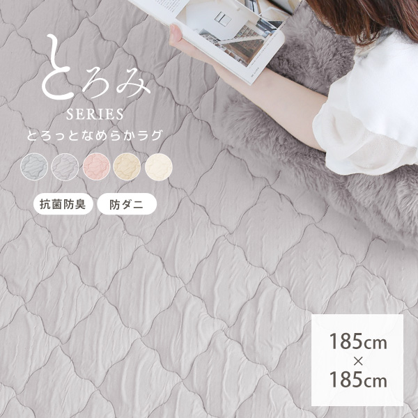ラグ ラグマット ひんやり 接触冷感 Q-max0.5 洗える 抗菌 防臭 185×185cm 霜降り調 おしゃれ 冷感 2畳 正方形 ウォッシャブル 夏用ラグ 夏用