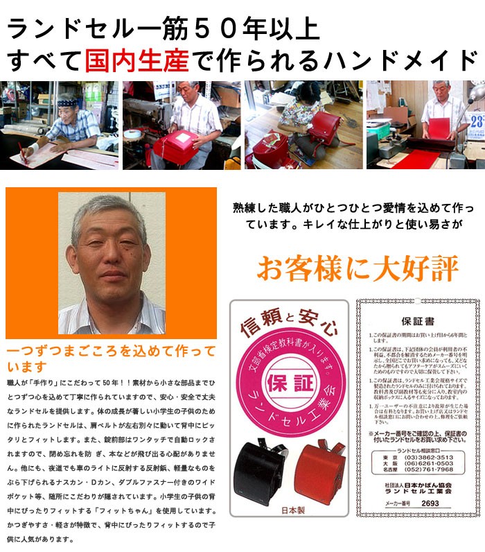 手作りにこだわって50年!!素材から小さな部品までひとつずつ丁寧に作られるランドセル。