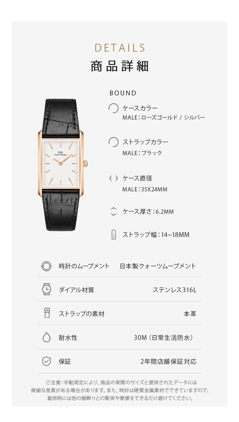 腕時計 時計 メンズ ダニエルウェリントン DW ブランド 20代 30代 40代 おしゃれ 大人 上品 スクエア プレゼント ギフトBound 母の日