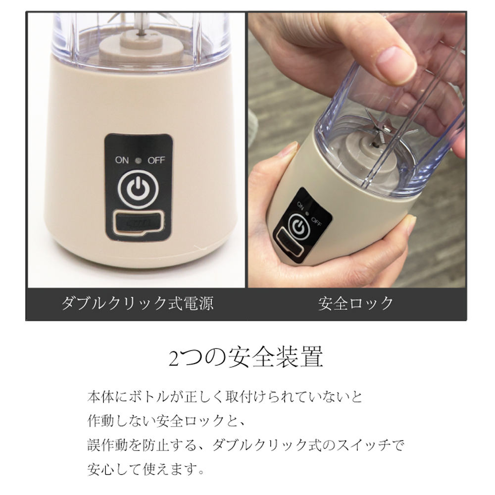 コードレスミキサー 充電式ブレンダー 充電式ミキサー ポータブルブレンダー 小型ブレンダー コンパクトミキサー ジューサー ハンドブレンダー ミニミキサー アウトドア オフィス 車内 ポータブル そのまま飲める 飲み口つき 分解可能 お手入れ簡単 軽量 スリム フルーツ 野菜 朝食 スポーツ ジム 新生活 プレゼント ギフト ベージュ グレー かわいい おしゃれ シンプル 家電 キッチン家電 メーカー保証 保証 ボトルブレンダー 電動ミキサー 電動ブレンダー 省スペース 自宅用