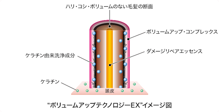 髪と頭皮にダブルアプローチ! 髪の芯からふんわり感を演出進化した“ボリュームアップテクノロジーEX”で、根もとからボリュームアップをサポート!