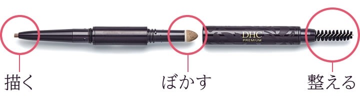 眉毛をやさしくケアする、ティアレ花エキス※1、オリーブバージンオイル、パンテノールといった3種の美容液成分を配合しました。さらにペンシルは、DHC史上最高※2のなめらかな描き心地を実現。眉毛にも肌にも負担をかけない、ストレスフリーなメークを叶えます。