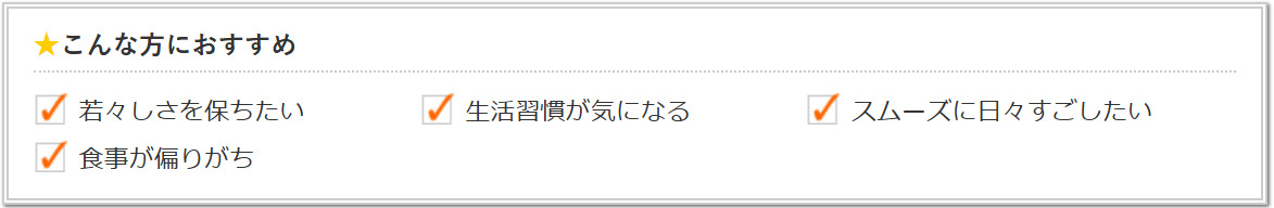 ※健康食品は食品なので、基本的にはいつお召し上がりいただいてもかまいません。食後にお召し上がりいただくと、消化・吸収されやすくなります。他におすすめのタイミングがあるものについては、上記商品詳細にてご案内しています。