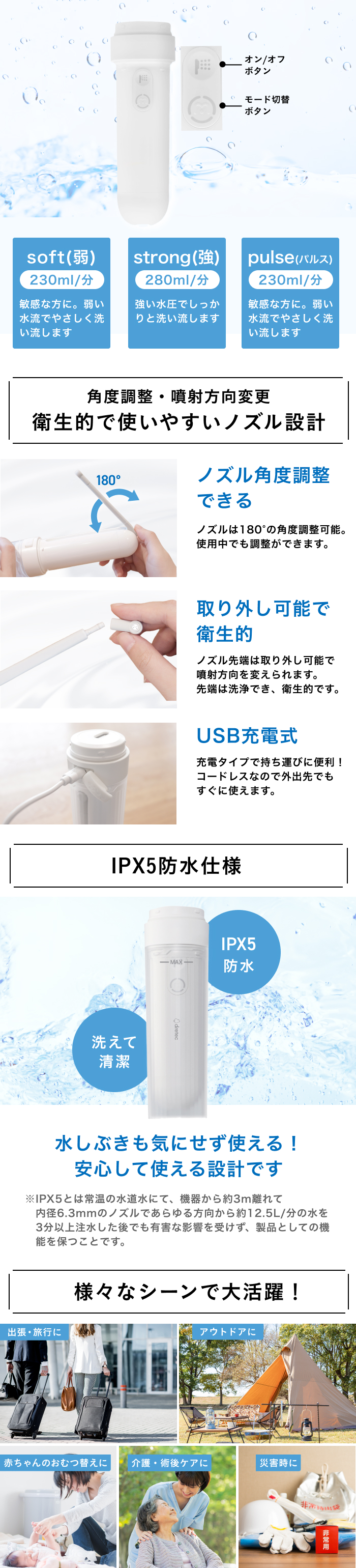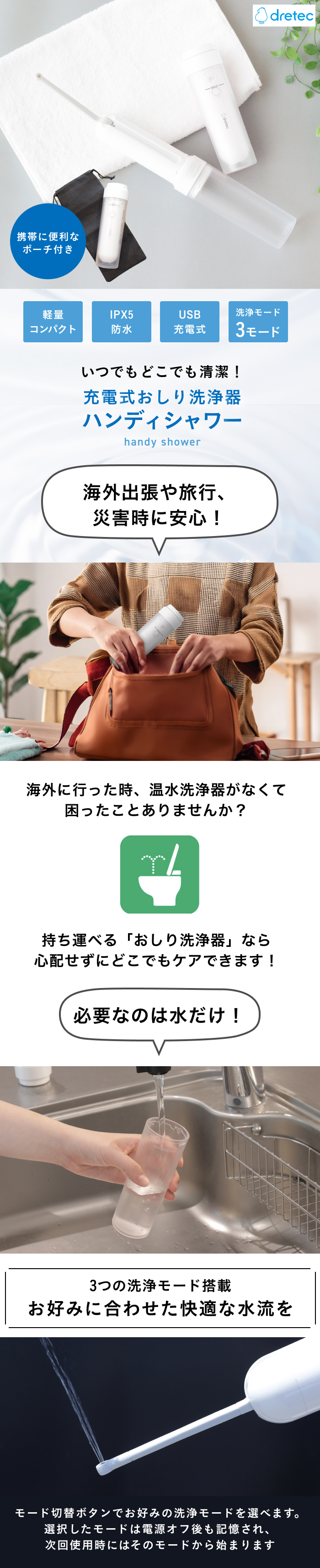 ドリテック 公式 携帯 充電式 おしり洗浄機 PW-102 ハンディシャワー 防水 ポータブル洗浄機 携帯 電動 携帯洗浄機 ポータブルシャワー 温水洗浄